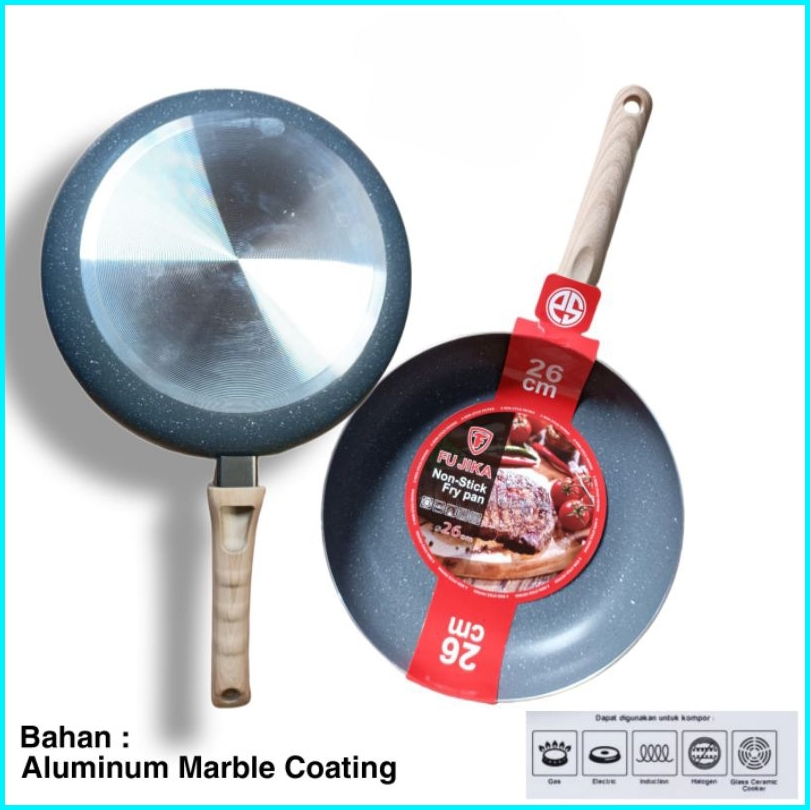 Granite Fry Pan Marble Anti Lengket Ukuran 20cm 22cm 24cm 26cm Wajan Penggorengan Modern
