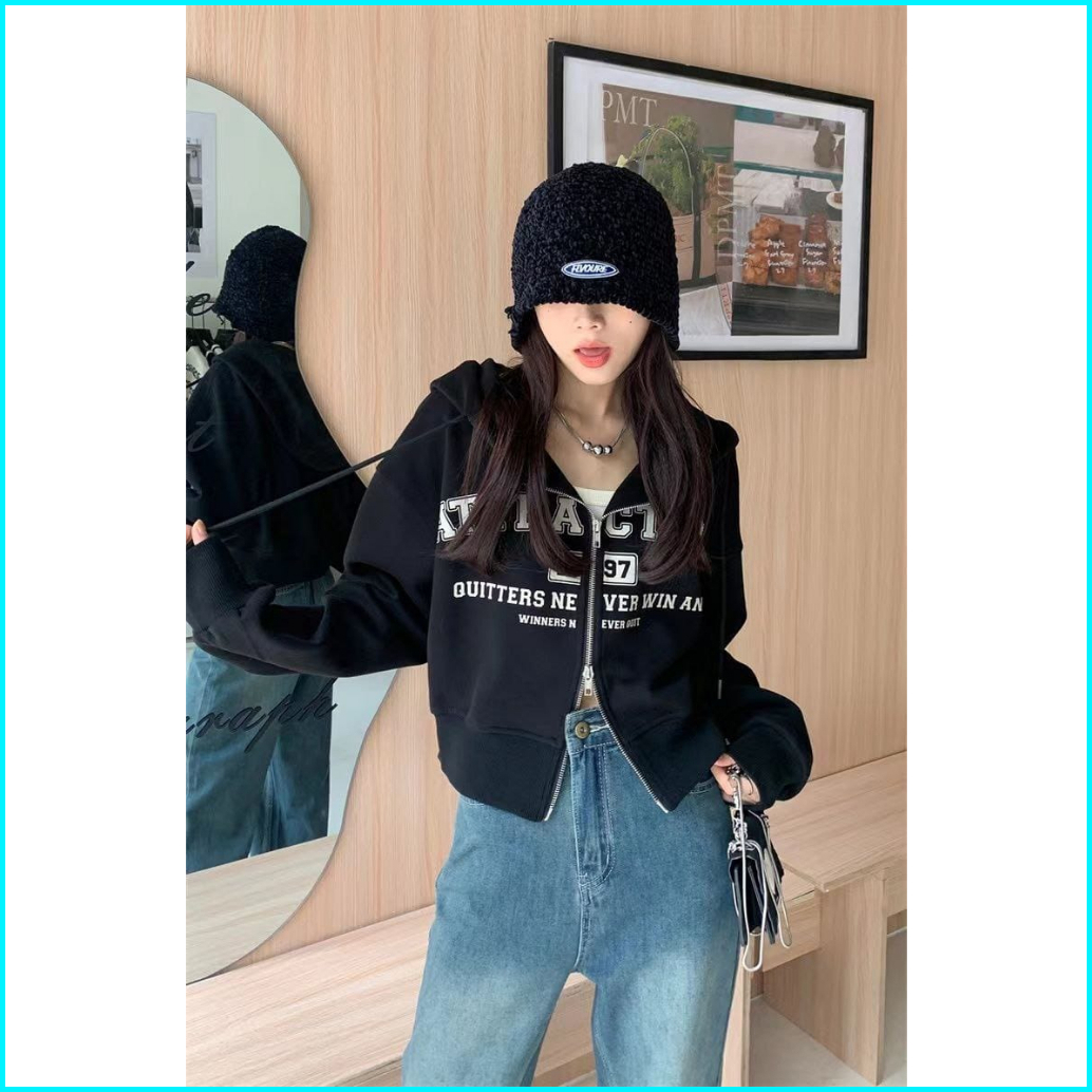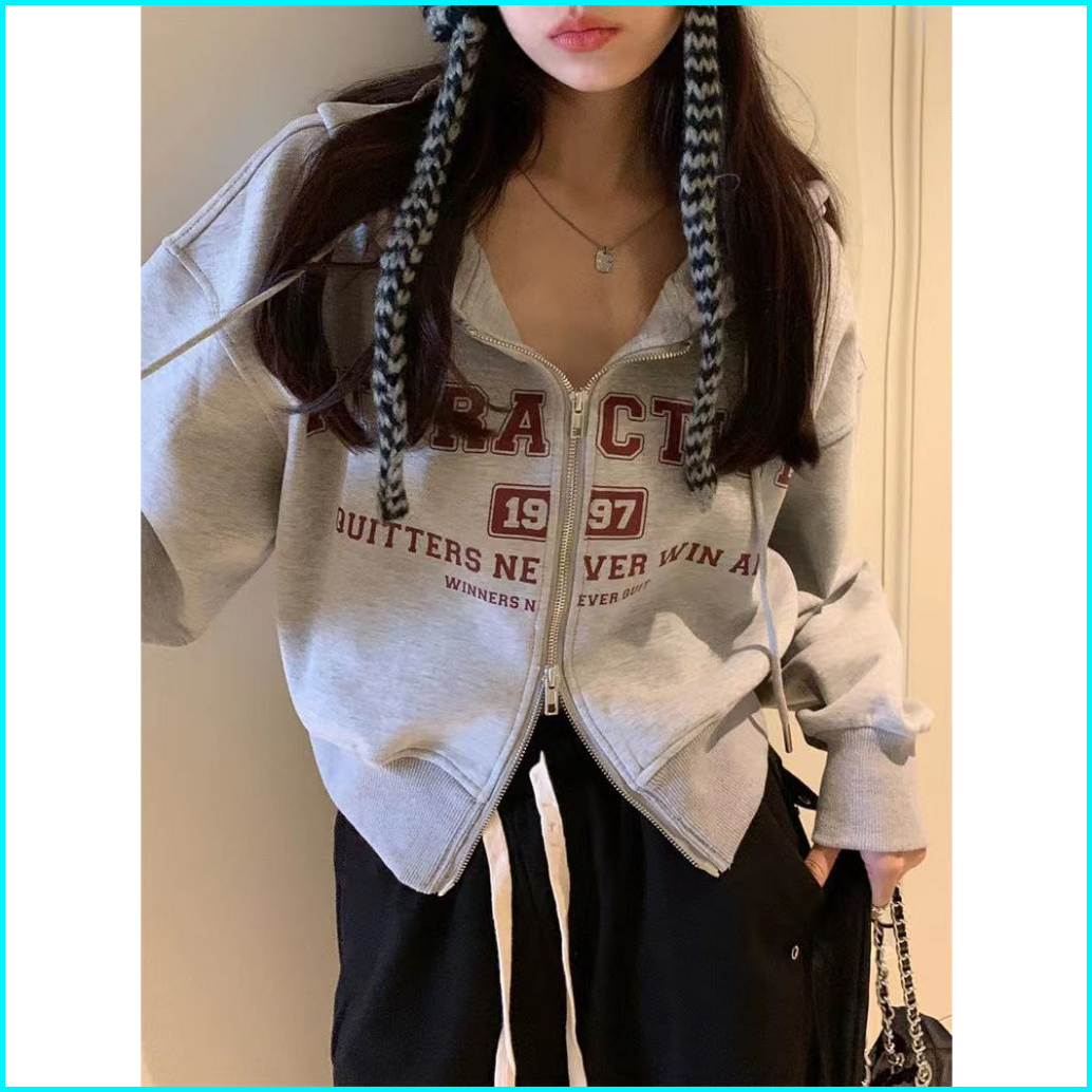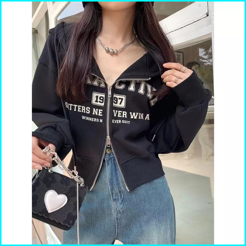 Atractive Hoodie Ziper Wanita Oversize Sweater Jaket Double Ziper Kekinian Korean Style