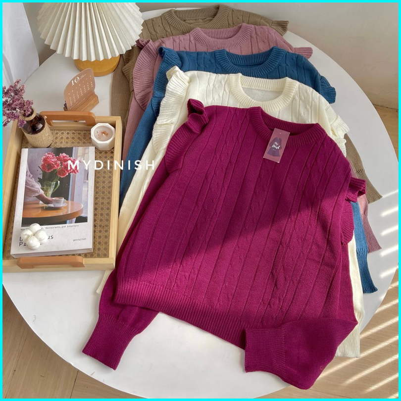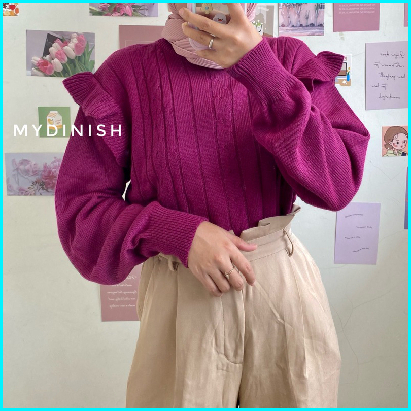 Fatira Ruffle Blouse - Atasan Rajut Wanita Motif Kriwil Kekinian