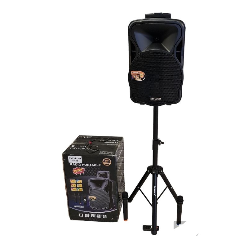 Speaker Portable Aiwa 12 Inch Bonus 2 mic Wireless dan STENDING