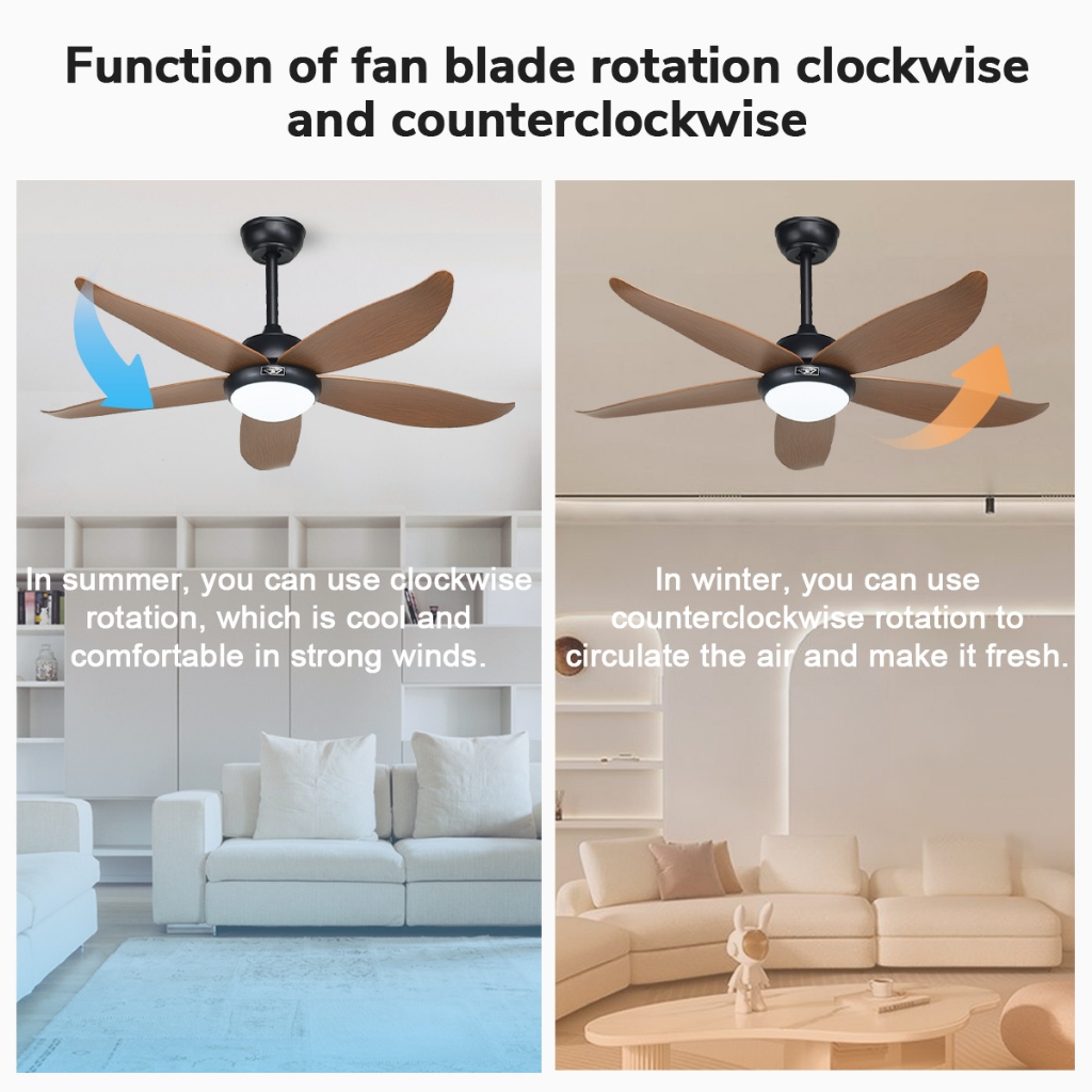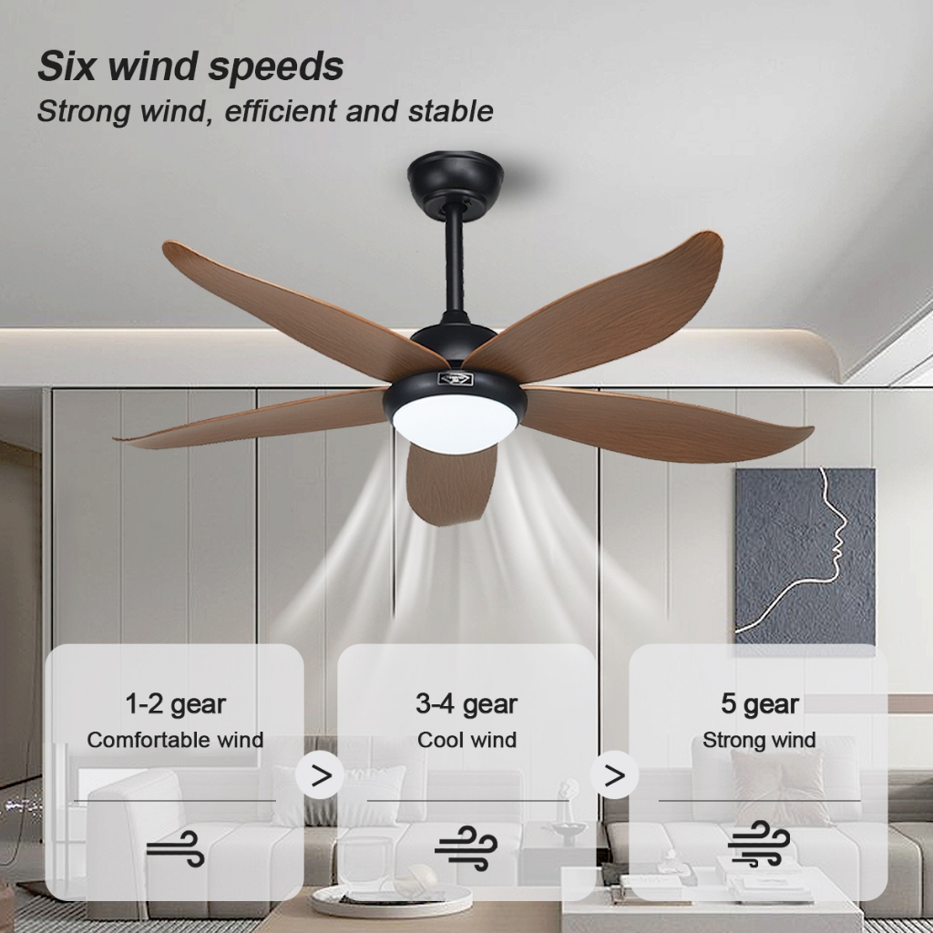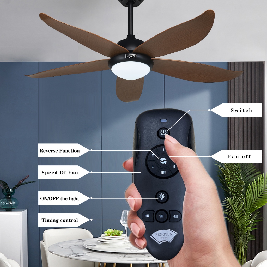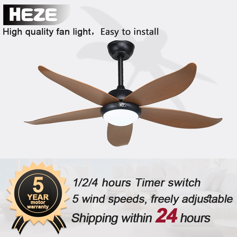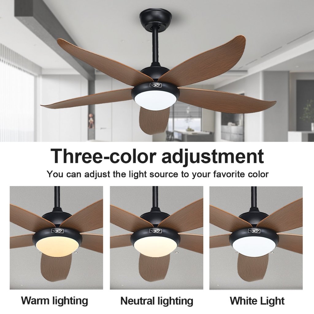 HEZE Lampu kipas kendali jarak jauh 2-in-1 48inch Gaya retro 3 warna lampu kipas led ruang DC Serat Kayu dekoratif kipas