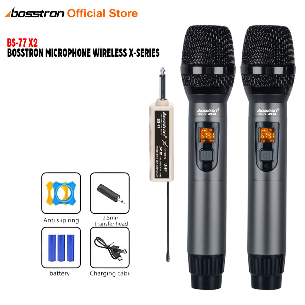 Bosstron Mic Wireless Karaoke BS-77 X2 Microphone Tanpa Kabel Mikropon Body Besi Case Koper