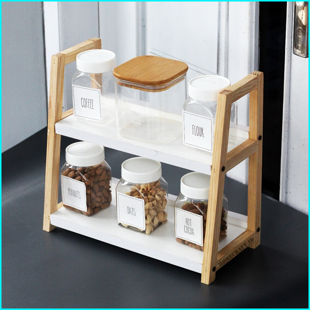 Rak Bumbu Dapur Dua Tingkat Serbaguna - Mudah Dibersihkan - Rak Kosmetik