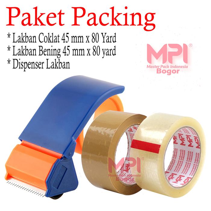 Paket Packing - Lakban Coklat & Lakban Bening 45mm x 80 yard + Dispenser Lakban MPI - paket 1