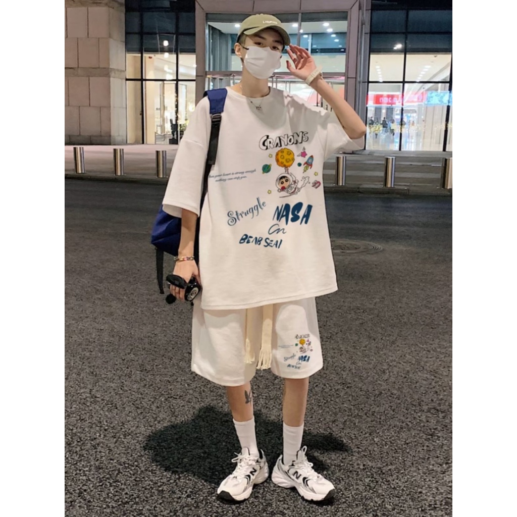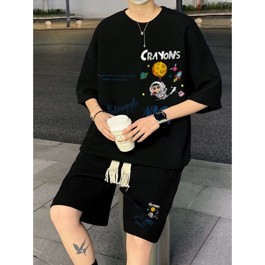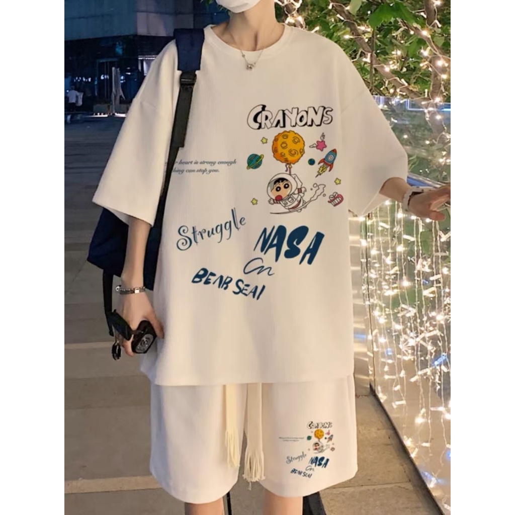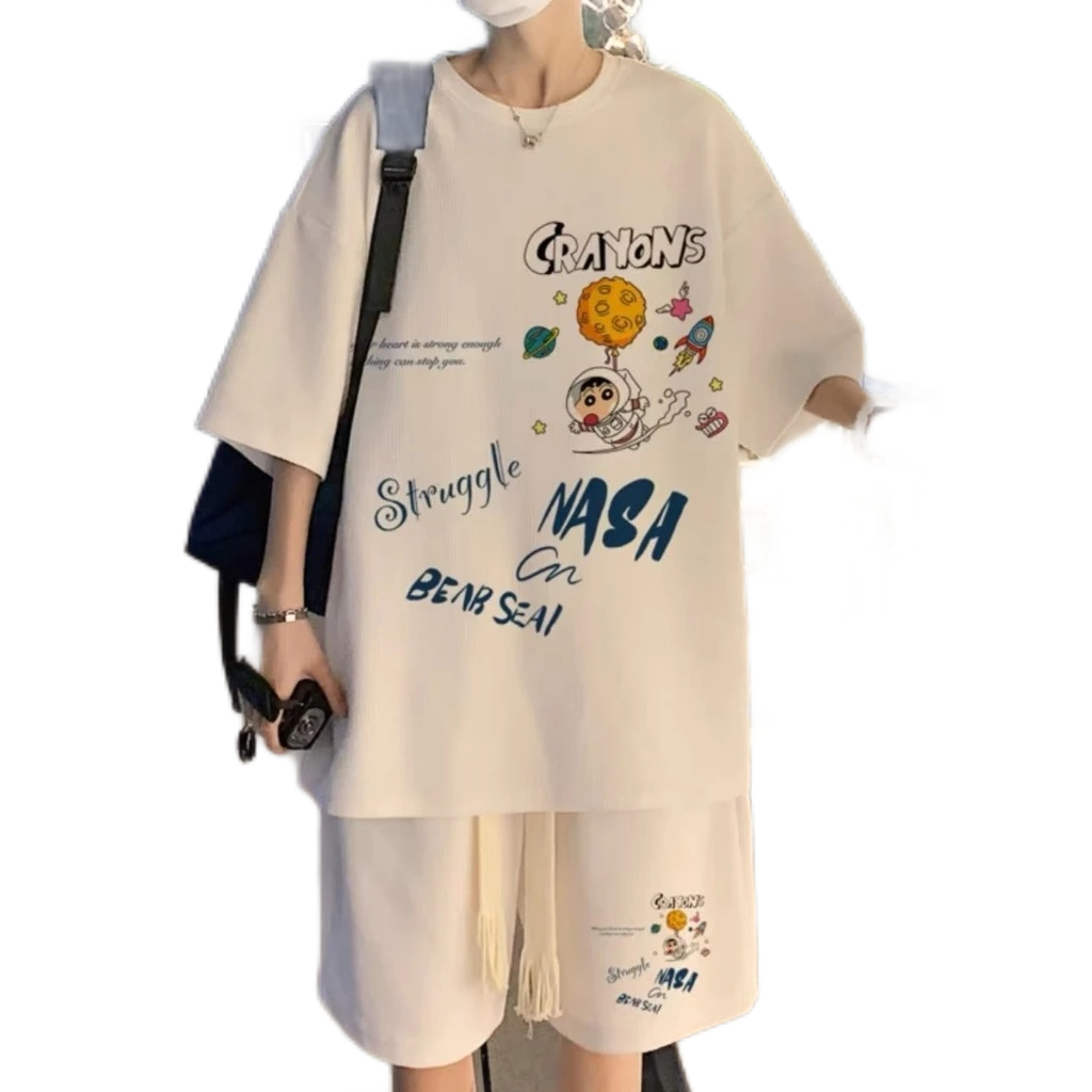 Ssmy TZ177 Nasa Xiao Xing Cute Motif Sablon Celana+Tshirt Set Waffle Fashion Wanita & Pria