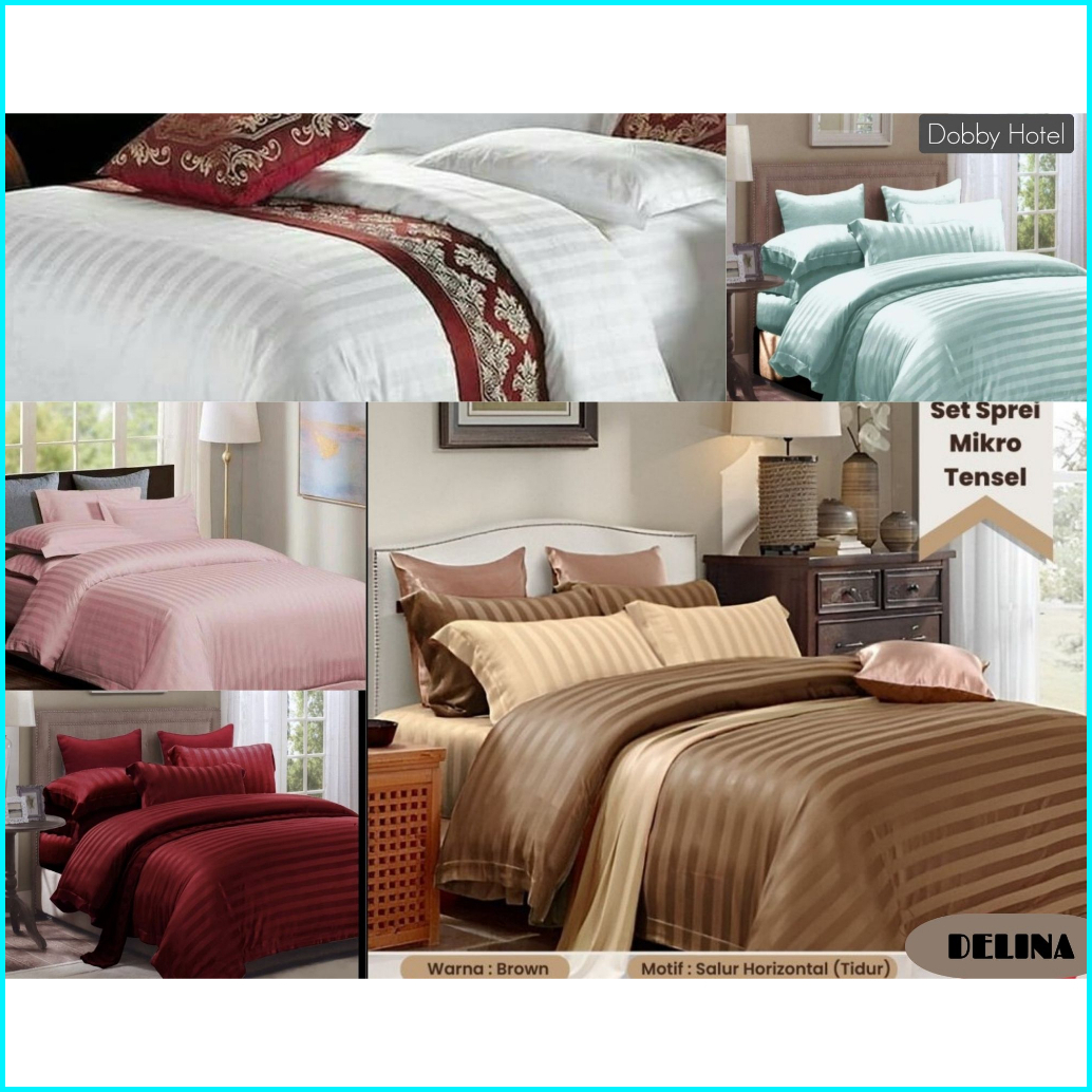 Bedcover Set Sprei Tinggi 20 Cm.motif Polos Embos Salur Gratis Tas