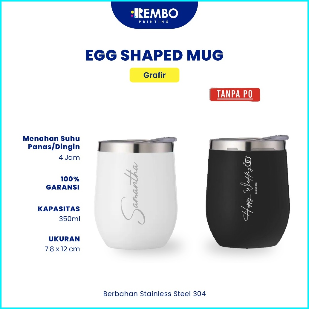 Custom Mug Egg Shaped Gelas Kopi Gelas Kopi Cangkir Teh Tahan Panas Dingin Tumbler Grafir - Rembo Printing