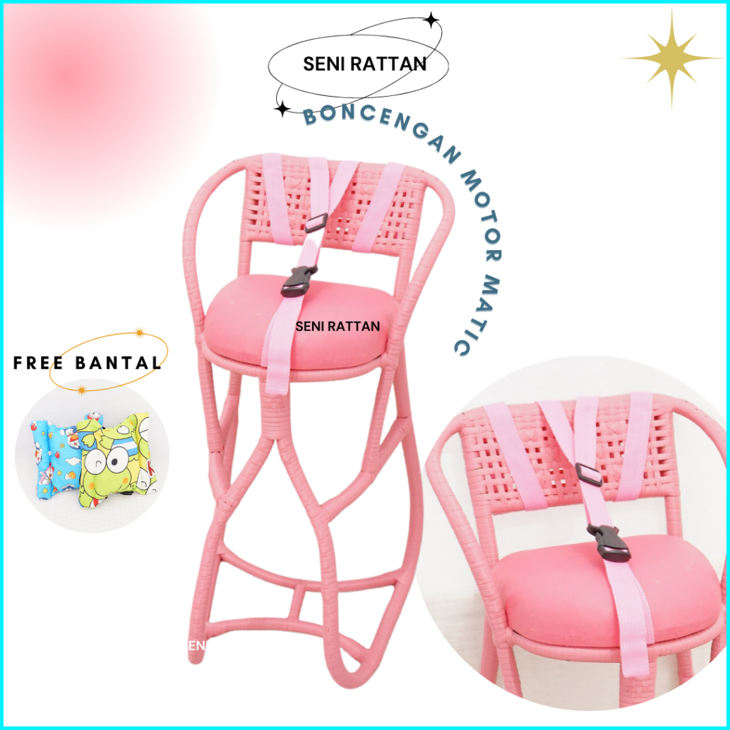 Boncengan Anak Motor Anyaman Rotan Sintetis Full Pink Plus Bantal Stang Dan Sabuk Pengaman