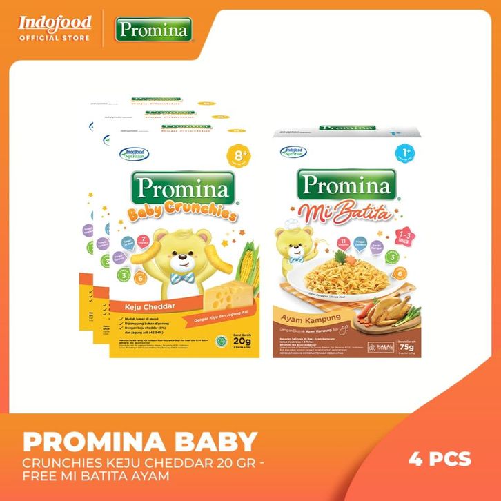 3 PCS - Promina Baby Crunchies Keju Cheddar 20 Gr Free Mi Batita Ayam