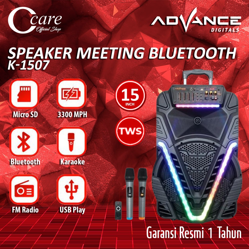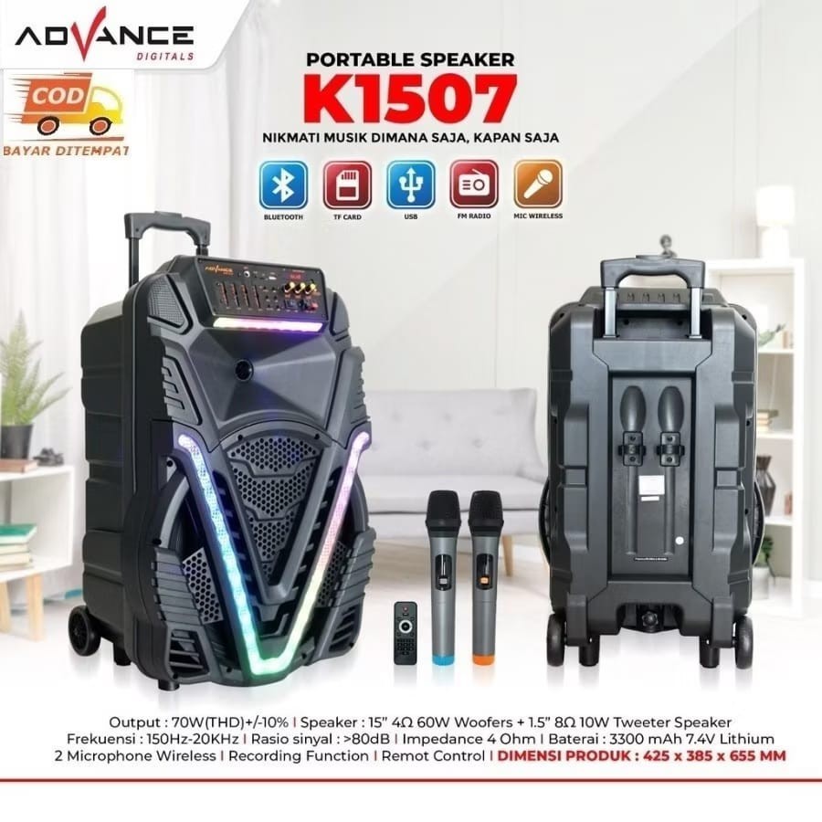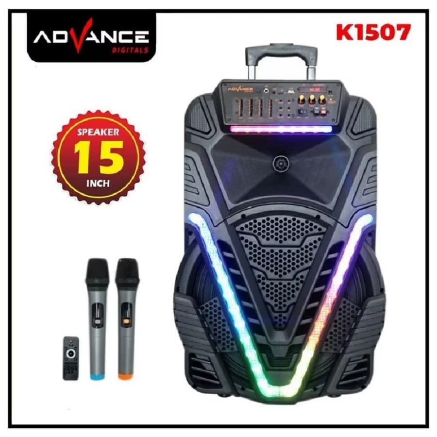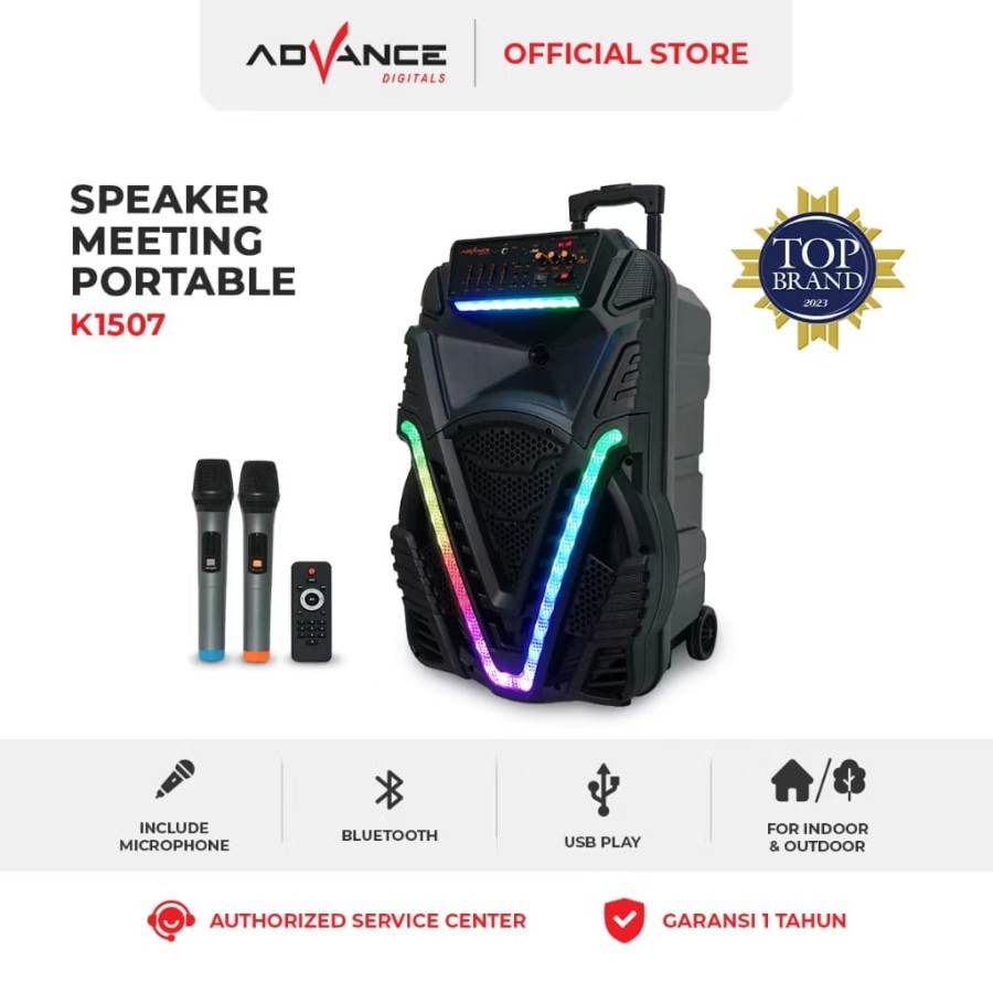 Advance K1507 Speaker Bluetooth Portable 15 inch Dengan Handle Koper FREE 2 Microphone Wireless
