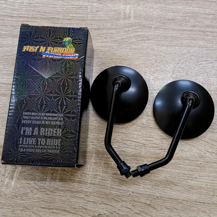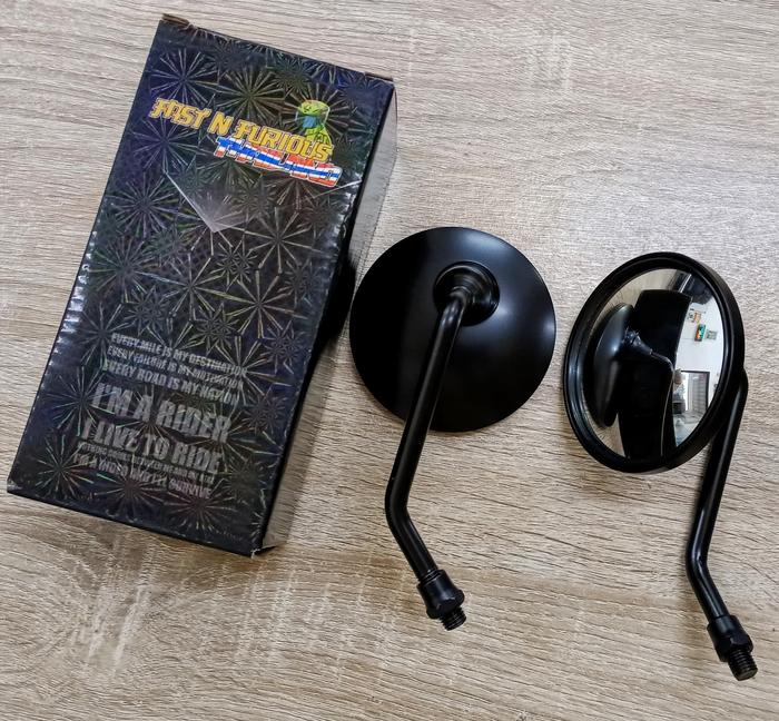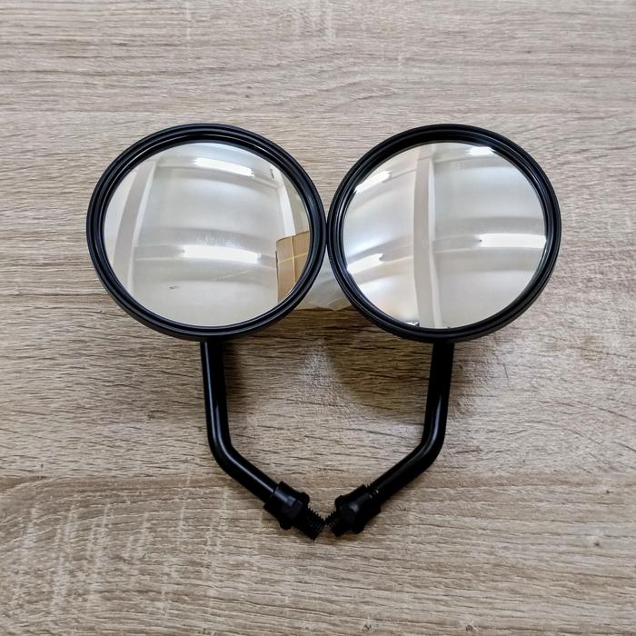 Spion Bulat Pendek Hitam Kaca Cembung Retro Vespa Full Cnc Universal Semua Motor Honda Yamaha Cembung - SPIO