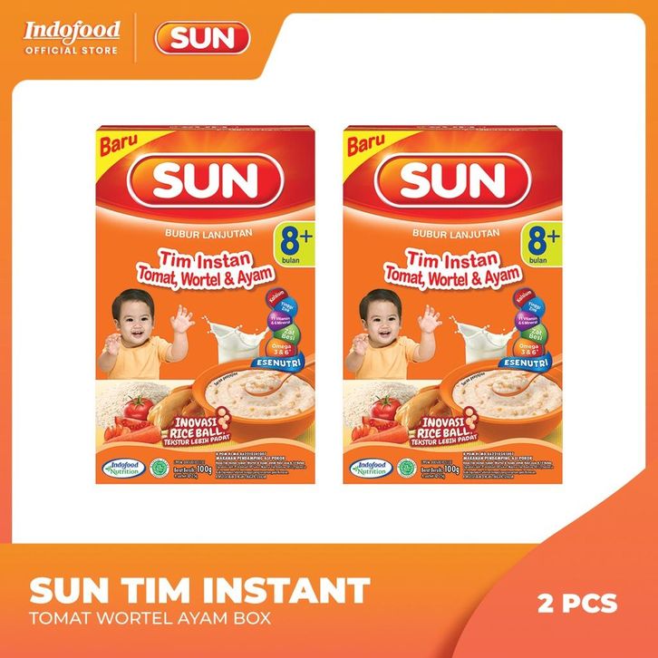 2 PCS - SUN Bubur Tim 8+ Tomat Wortel Ayam Box 100 Gr