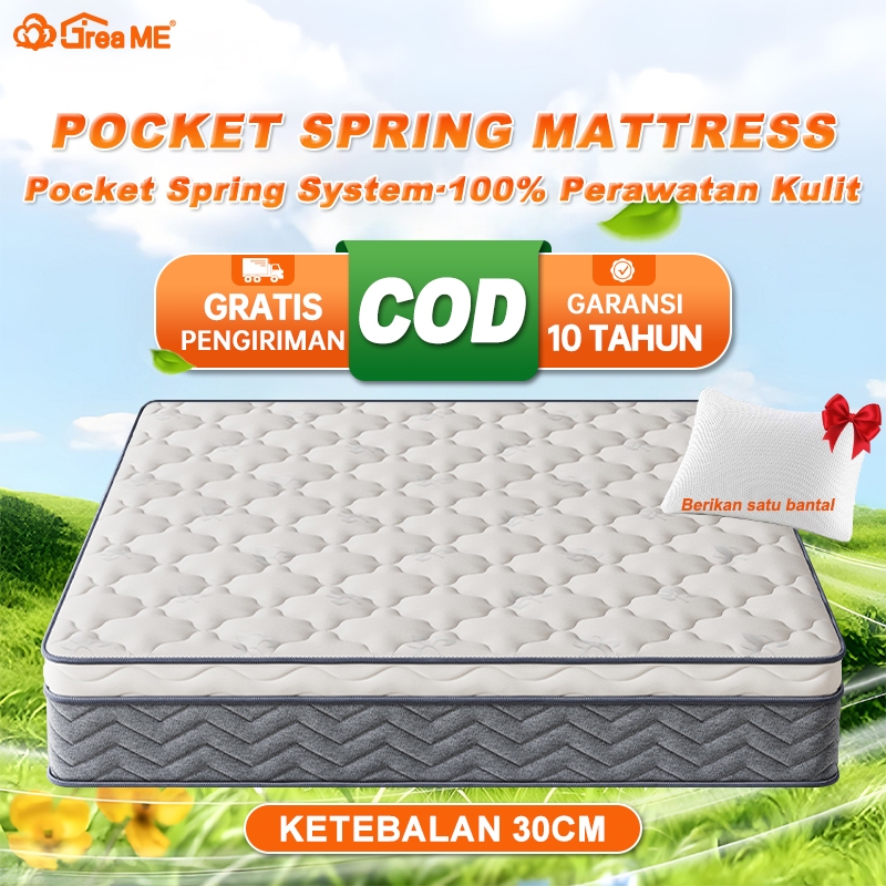MEBELASRI KASUR SPRINGBED KASUR BUSA TEBAL 30CM BAHAN RAJUTAN YANG NYAMAN MEMORY FOAM EMPUK LANTAI MATRAS ANTI LEMBAB FREE BANTAL MATTRESS IN A BOX