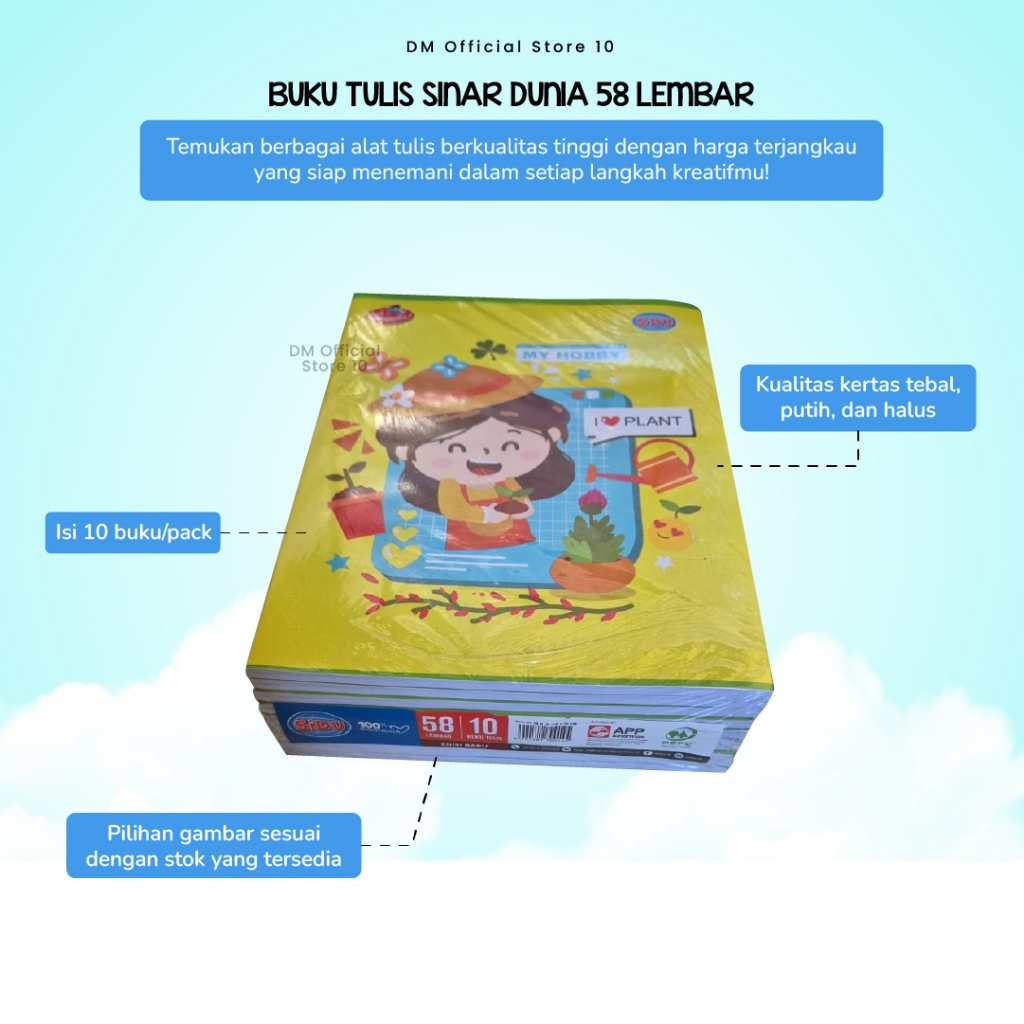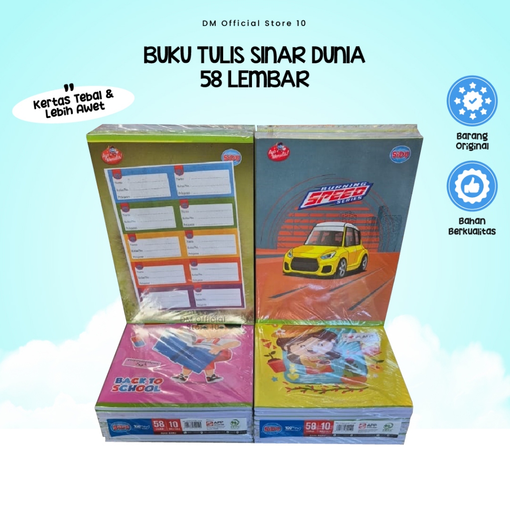 Buku Tulis Sekolah Sinar Dunia (SIDU) 58 Lembar 1 Pack (isi 10) Kertas Halus Tebal Cover Motif Gambar