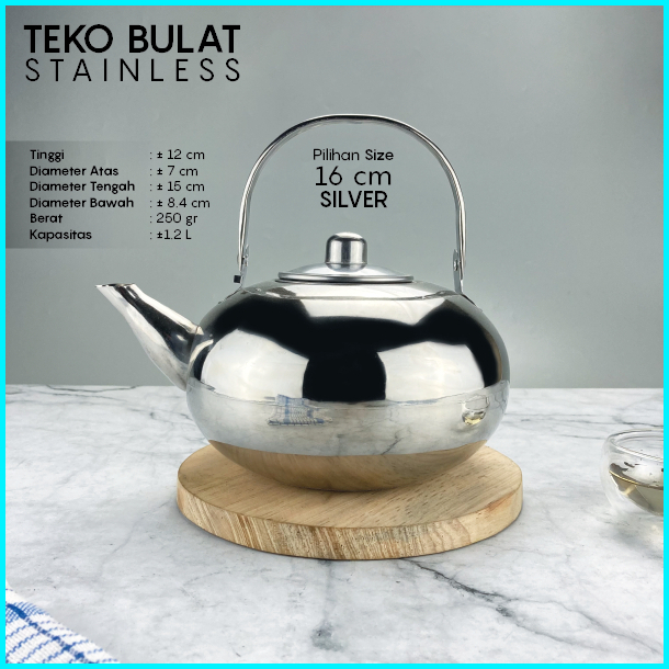 Teko Stainless Bulat 1.2l 1.6l 2.2 Liter Tea Pot Air Panas Teh Kapasitas Besar Banyak