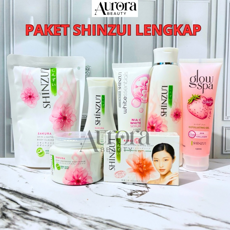 PAKET LENGKAP 7 IN 1 SHINZUI - Body Scrub 120GR - Body Lotion 100ML - Facial Foam 80ML - Body Cleanser 225 ml - Body Cleanser Refill 180ml - Sabun Batang - Glow Spa 130 ml