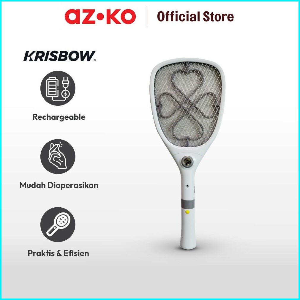 Azko Krisbow Raket Nyamuk Rechargeable Dengan Soket Bug Zapper Mosquito Killer Mosquito Racket Swatter Nyamuk Listrik