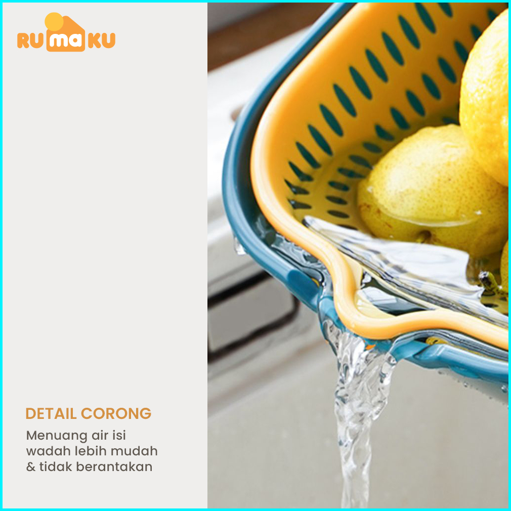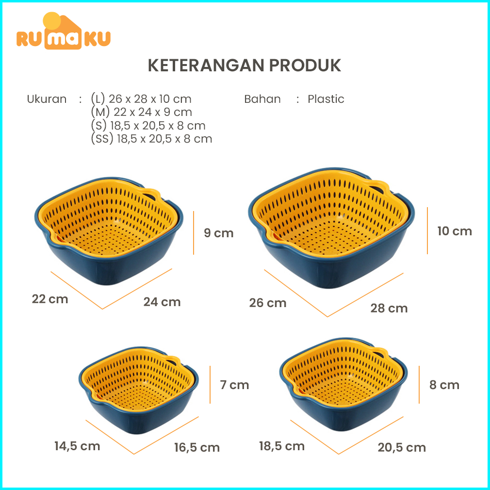 Rumaku Baskom Sayur Plastik 8in1 Serbaguna Keranjang Saringan Cuci Buah Multifungsi Bebas Bpa