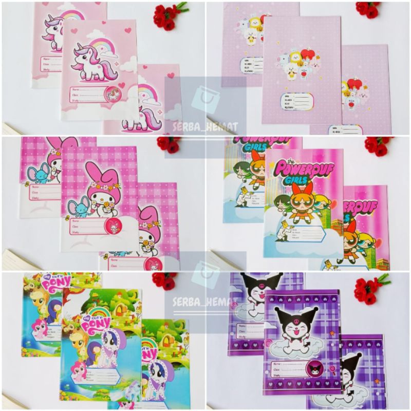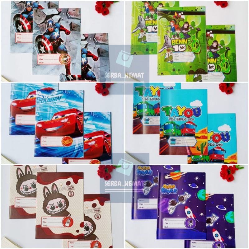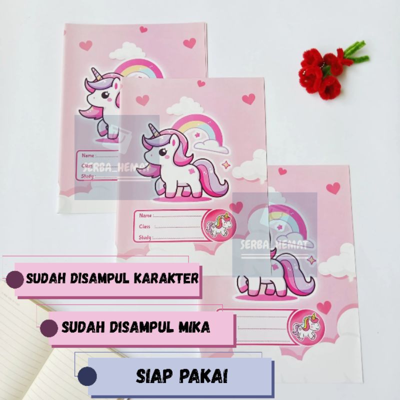 Buku Tulis Sidu 38 & 58 SUDAH DISAMPUL KARAKTER + SAMPUL MIKA SIAP PAKAI [1PAK ISI 10 BUKU] [labubu, little pony, cars,