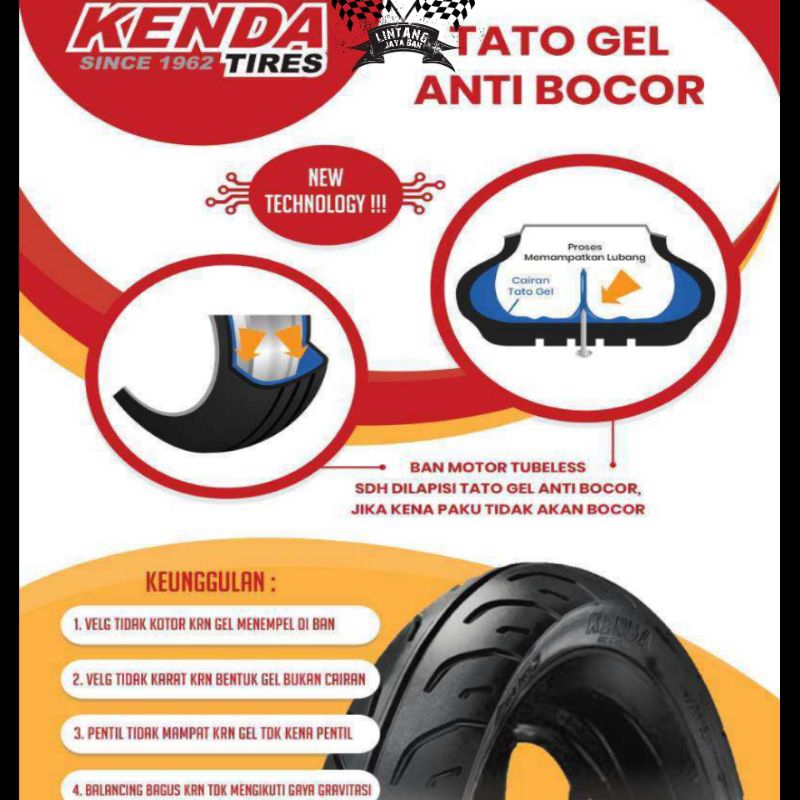Ban motor Kenda Anti bocor tato gel metik ring 14 kenda K6022 80/90-14 90/90-14 Tubeless