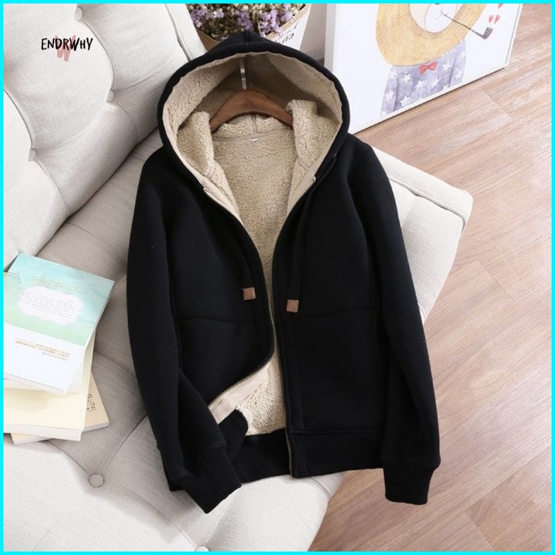 Terlaris Jaket Hoodie Zipper Hangat Musim Dingin Sweater Hoodie Tebal Polos Hoodie Sherpa