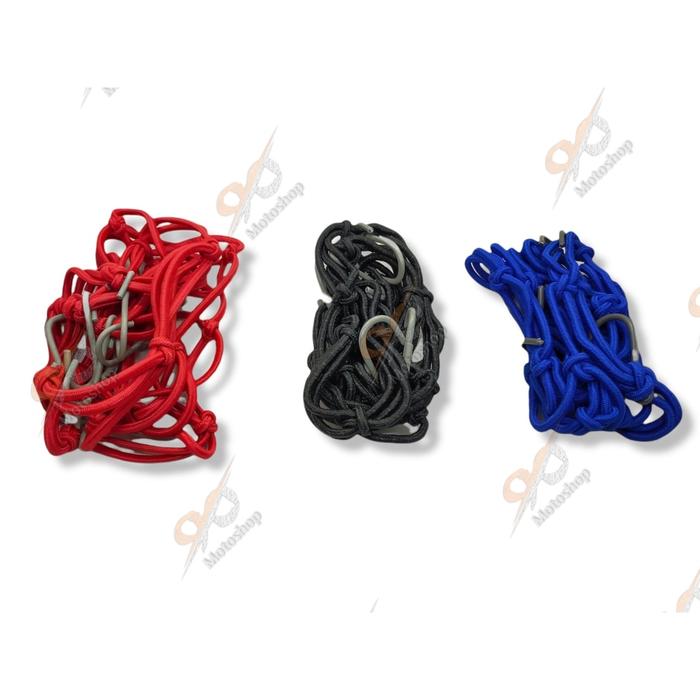 Tali Pengikat Jaring Helm Barang Bagasi Motor Sepeda Helmet Murah Tebal Berkualitas 6 Hook Carbon Net - Hitam