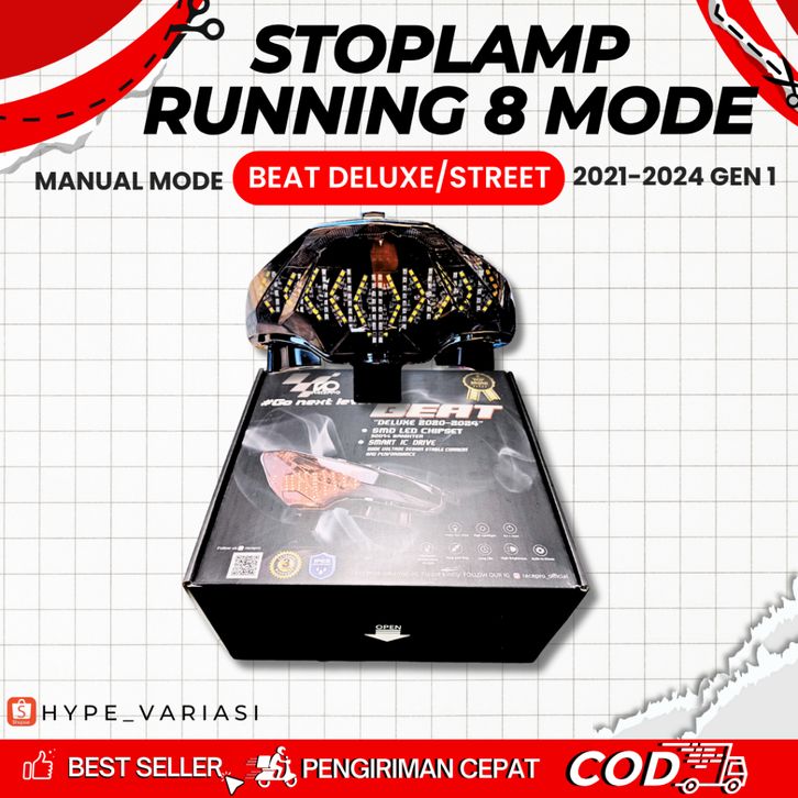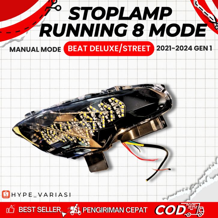 StopLamp Running Beat DELUXE RacePro 8 Mode Auto Manual Led Merah Running 3IN1 Hype