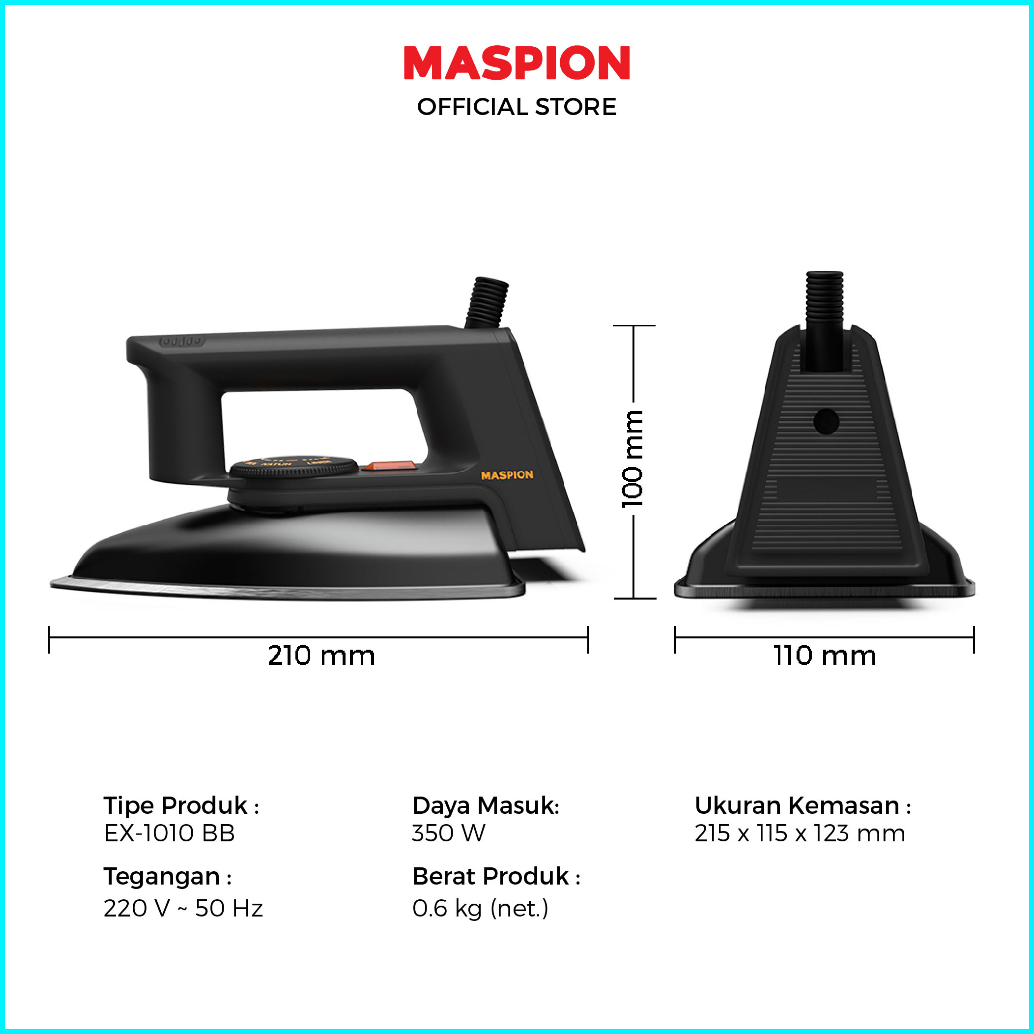 Ready Maspion Setrika Ex1010 Ex 1010 Bb Ex-1010 Bb Ex - 1010 Bb Ex 1010bb Blackberry 350w Garansi Resmi
