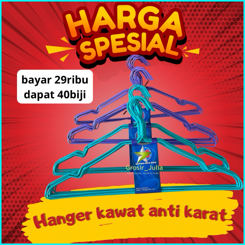Isi 40pcs Hanger Kawat Warna Gantungan Baju Anti Slip Anti Kawat Dewasa