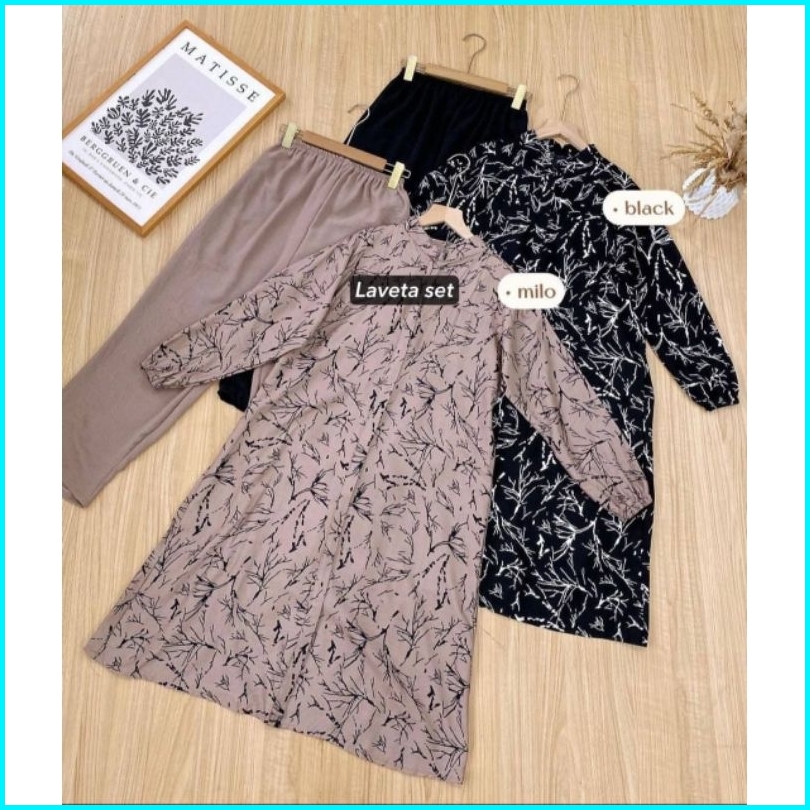 Laveta Set Tunik Setelan Tunik Terbaru Wanita Kekinian Setelan Tunik Adem Rayon Premium Grade A Set Long Tunik Wanita Mu