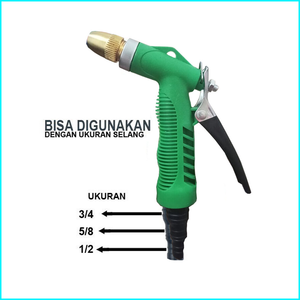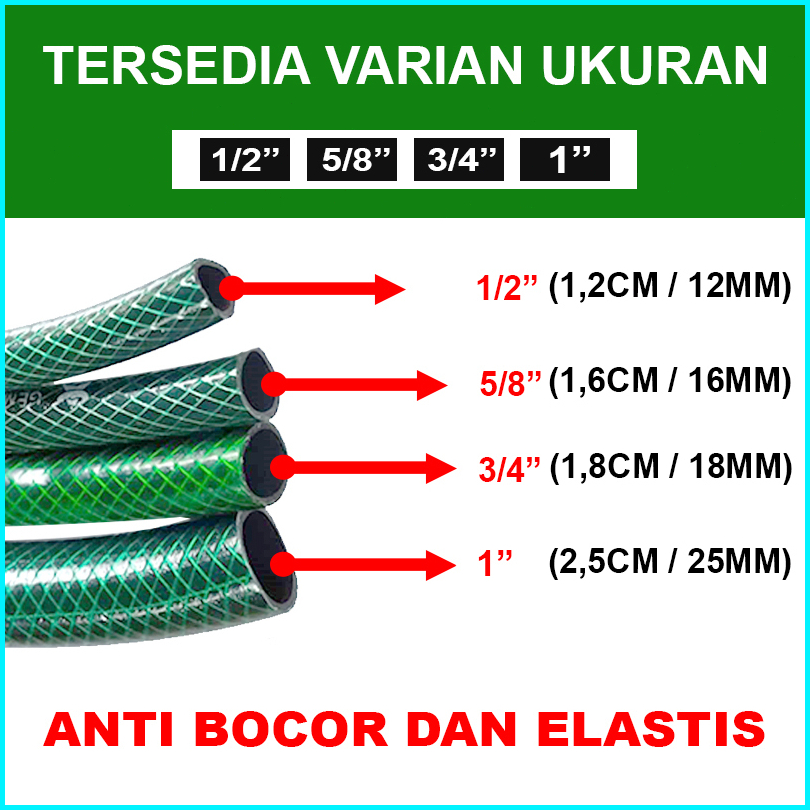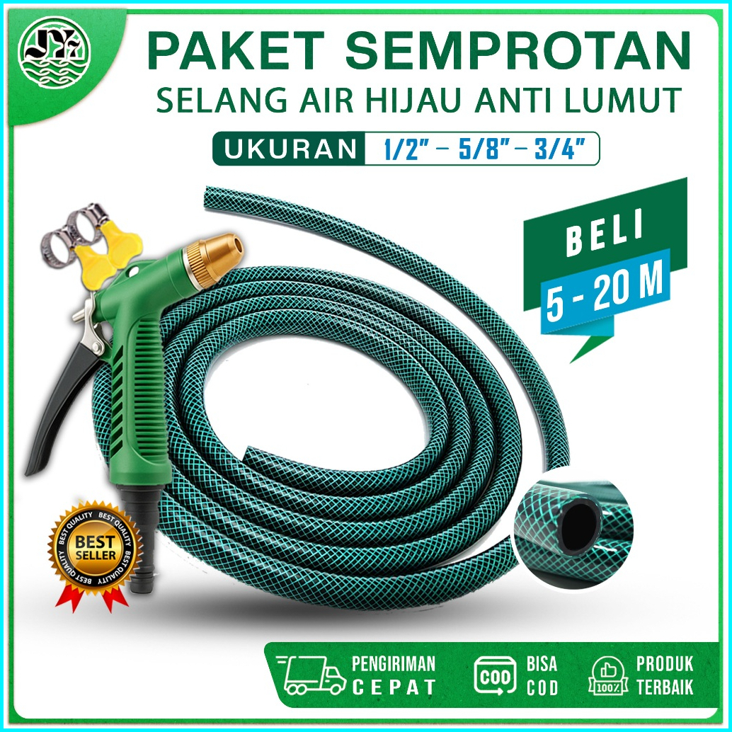 Sepaket Semprotan Selang Air 1 2 5 8 3 4 Inch 10-20 Meter Selang Air Hijau Anti Lumut Tebal Terlaris