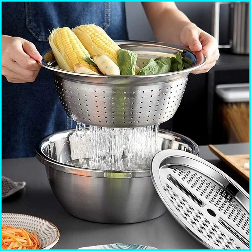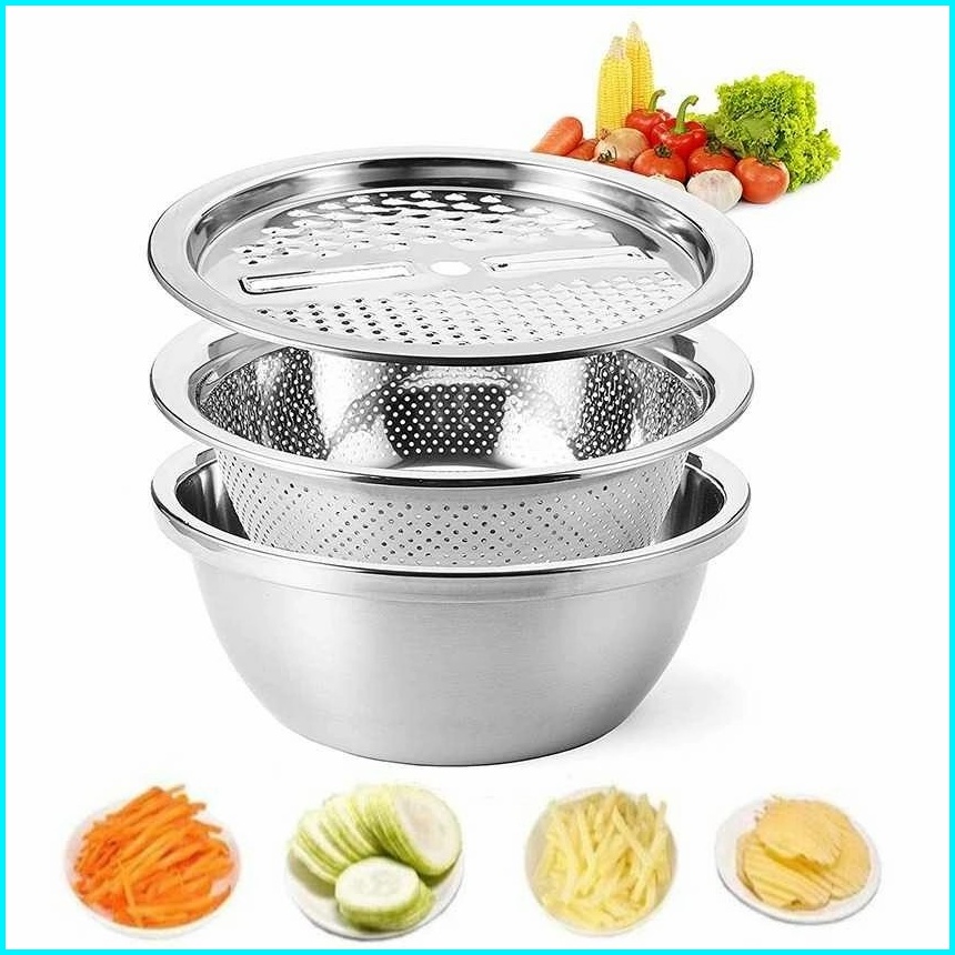 Baskom Parut Stainless Serbaguna - Parutan Baskom 3in1 Stainless Steel