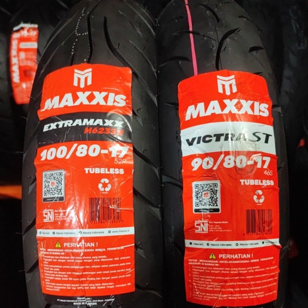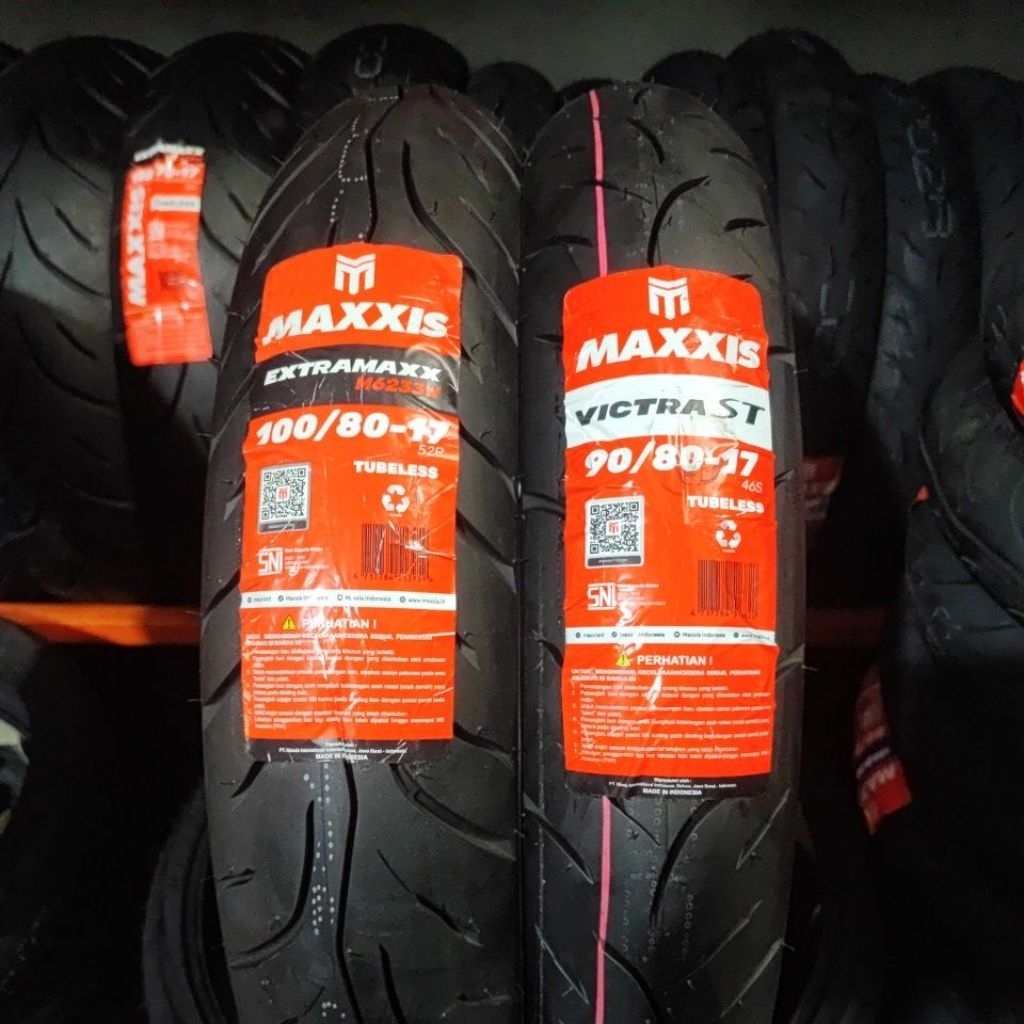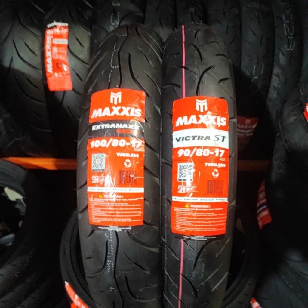 ( PAKET 2 BAN RING 17 MIX ) MAXXIS EXTRAMAX DAN VICTRA 100/80-17 & 90/80-17 TUBLES FREE P3NTIL DAN WRAPING