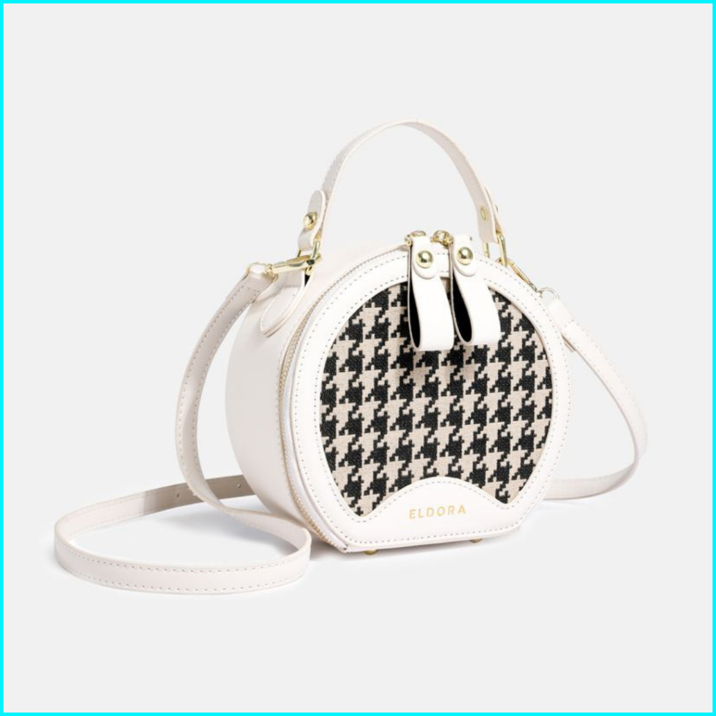 Mytote.bag Flo Tas Tangan Wanita Putih Hitam Motif Kotak Tali Panjang Wanita