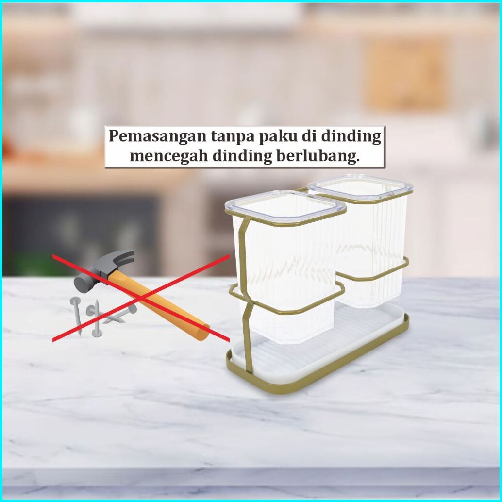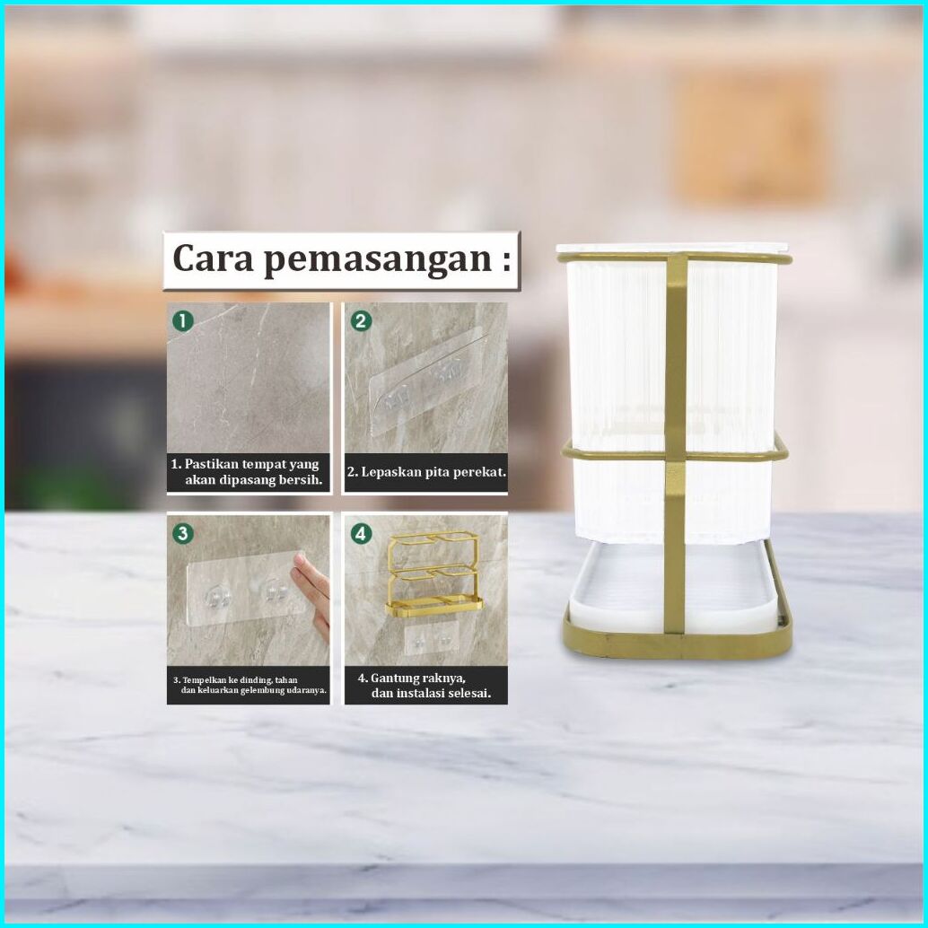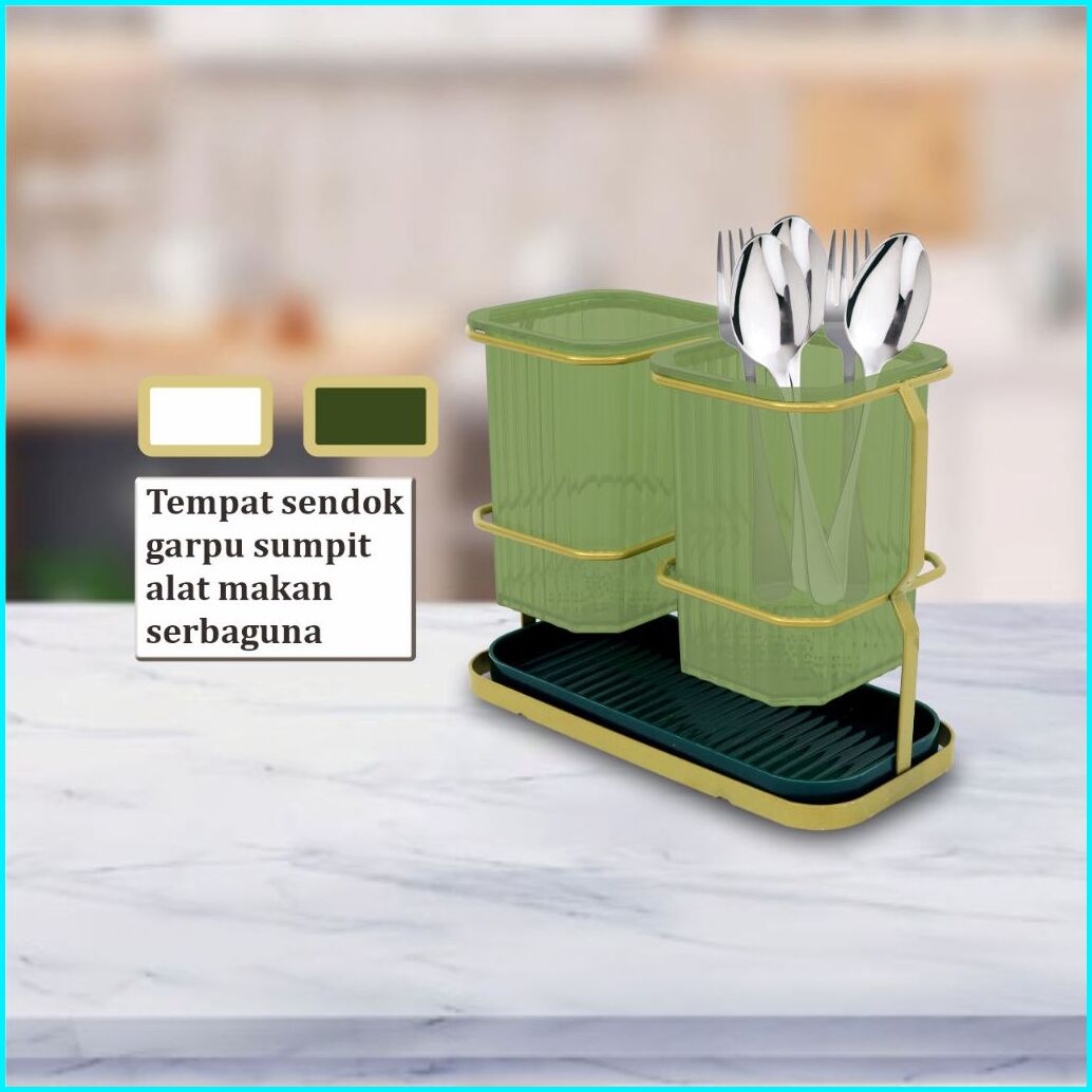 Tempat Sendok Garpu Sumpit Dinding Minimalis Dengan Peniris Air Cutlery Holder Serbaguna Rak Penyimpanan Alat Makan Rak