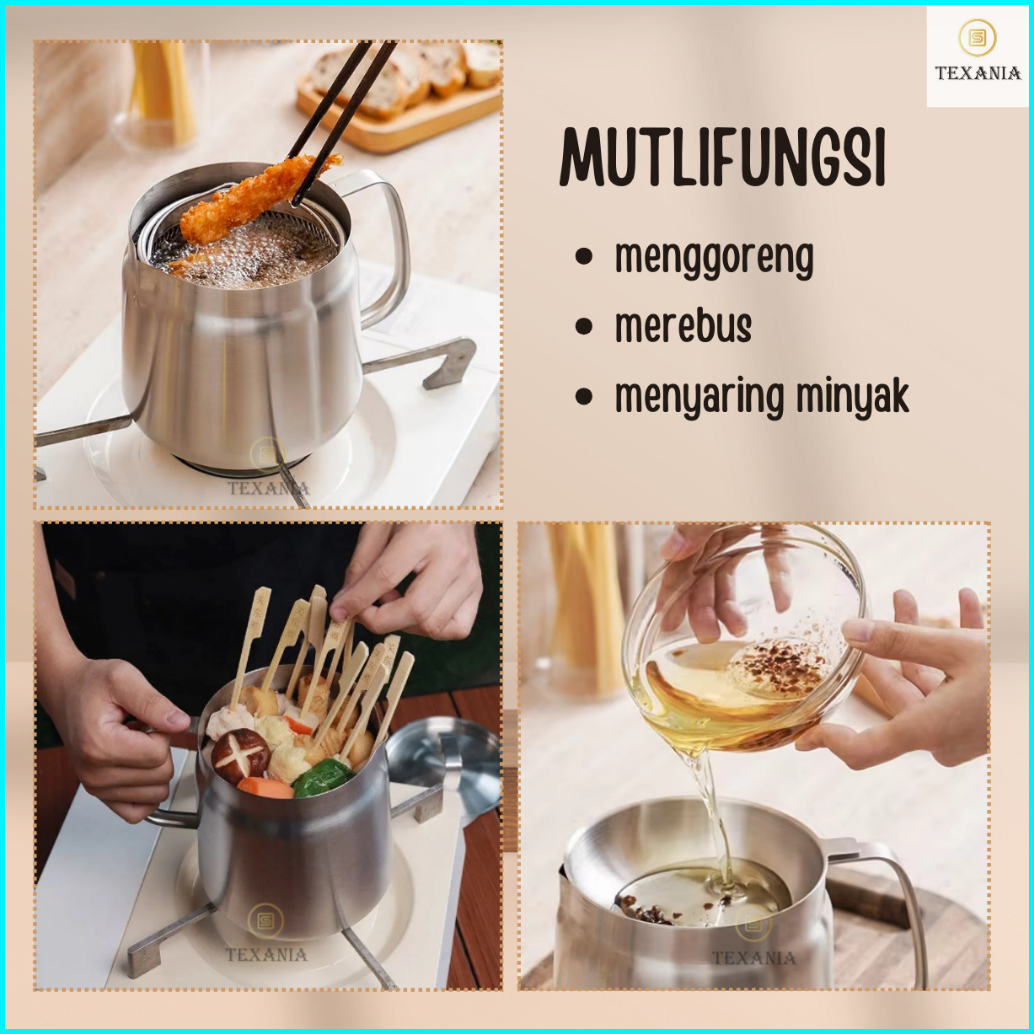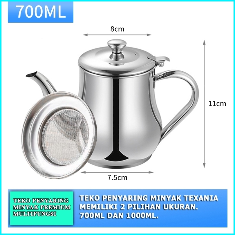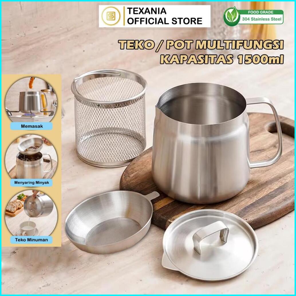 Terlaris Texania Teko Saringan Minyak Oil Pot Gelas Teko Stainless 700ml Dan 900ml Teko Air Minum Teko Deep Fry Pot 1500