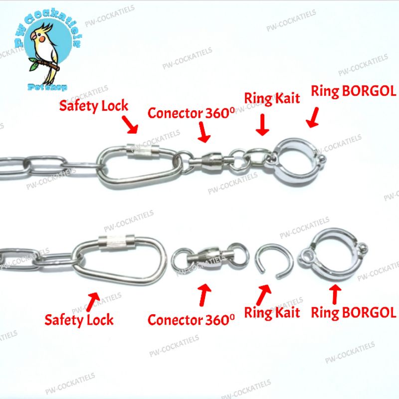 Rantai dan Ring Borgol Kaki Burung Macaw Parrot Rante Las Stainless