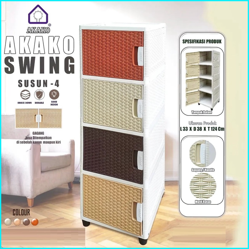 Akako - Lemari Pakaian Plastik Minimalis Lemari Rotan Akako Swing 4 Susun