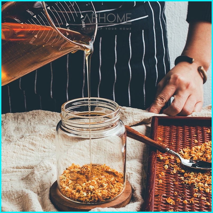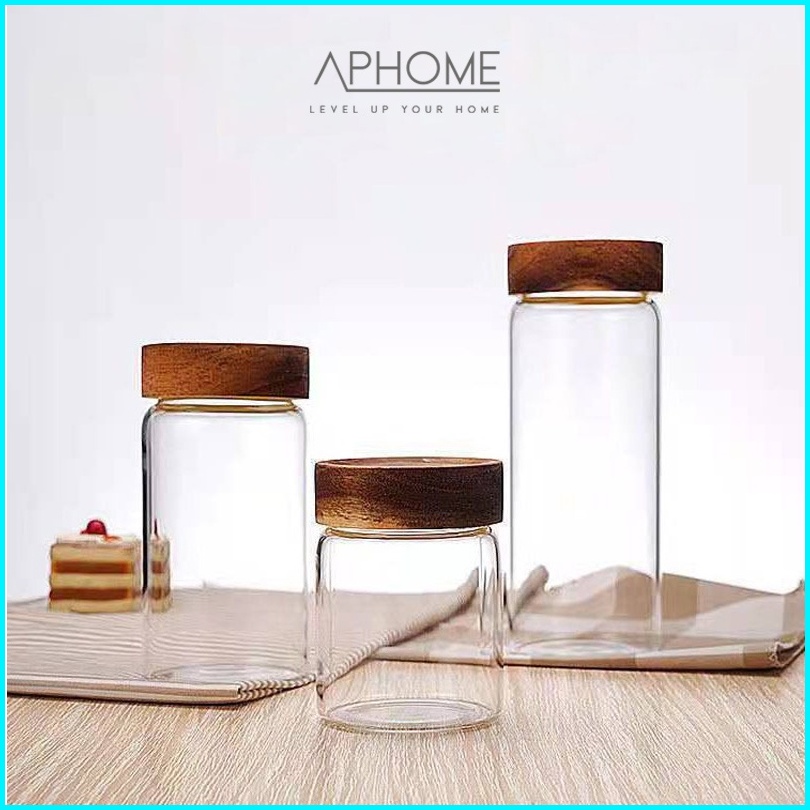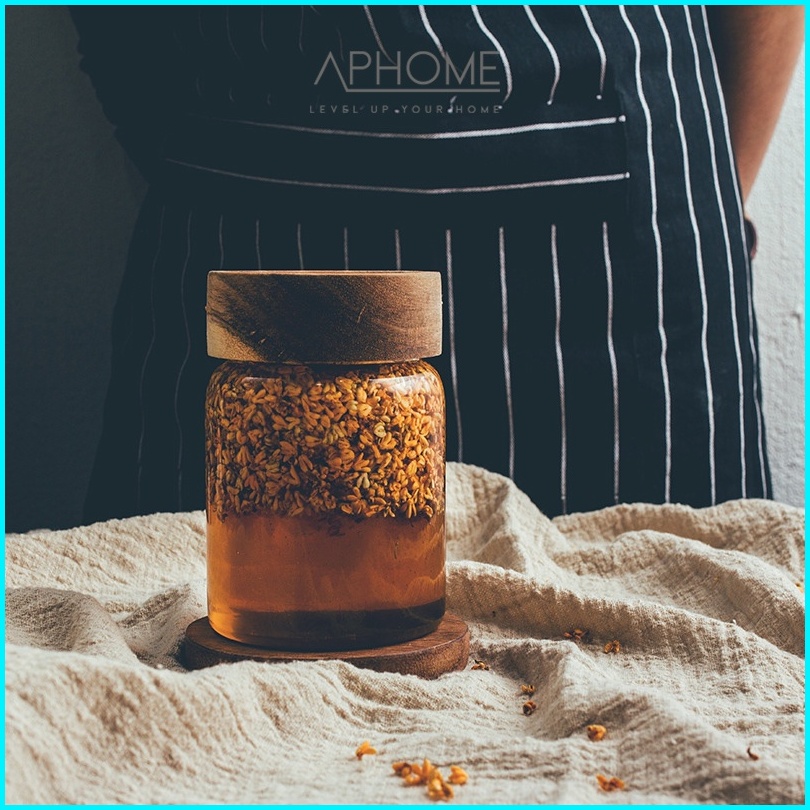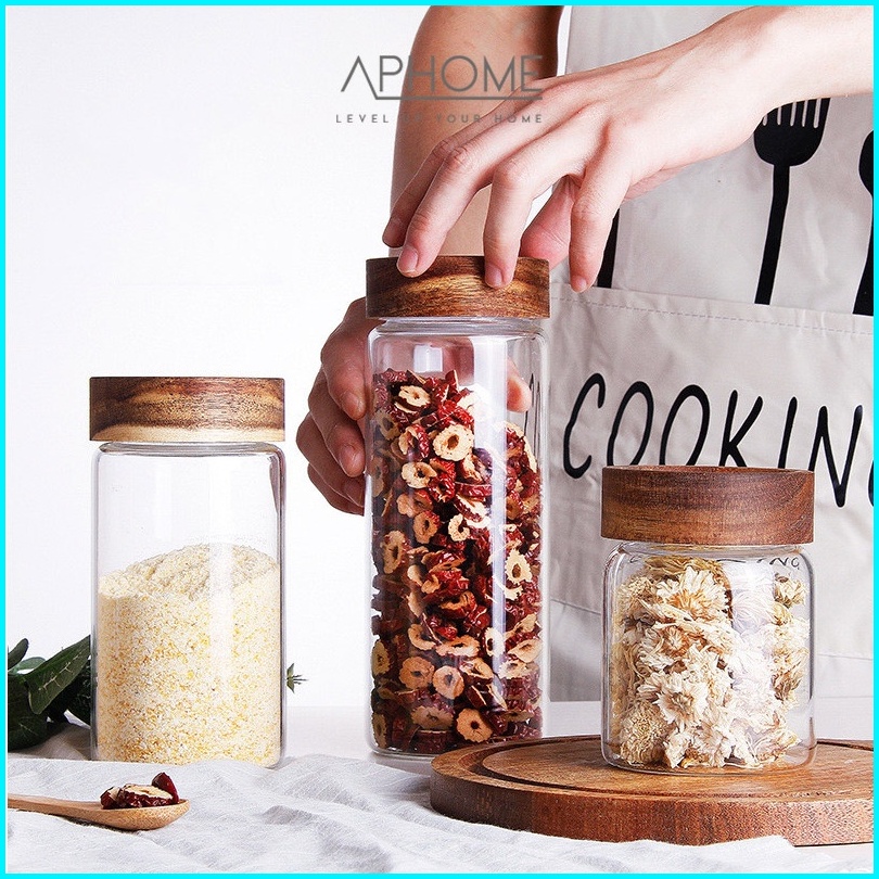 Aphome Toples Kaca Kontainer Makanan Dengan Tutup Kayu Toples Makanan Giri