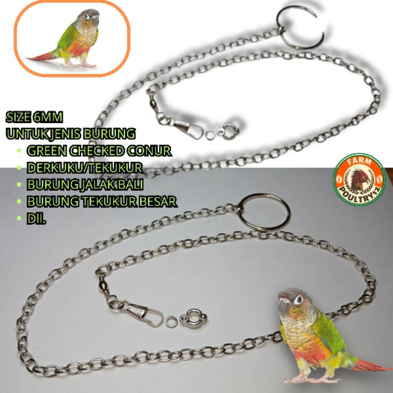 1 Set Rantai Burung No.6 Anti Karat 6 MM Rantai Burung Green checker Conure Rantai Burung Derkuku/Tekukur Rantai Burung