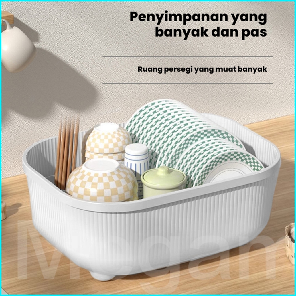 Megam Rak Piring Plastik Rak Piring Wastafel Tempat Alat Makan Tutup Rak Mangkok Sendok Garpu Rak Dapur Hlb403