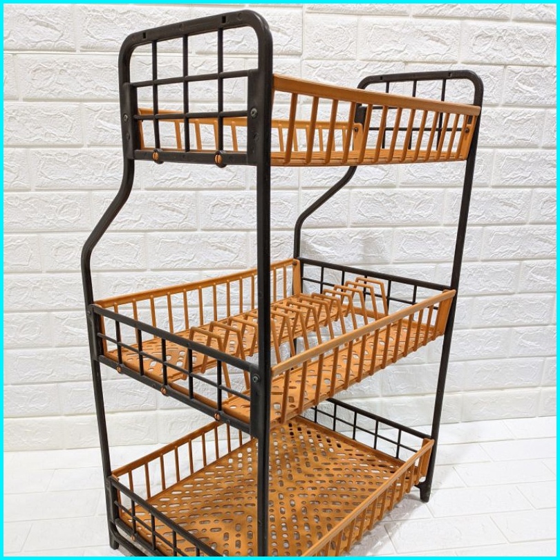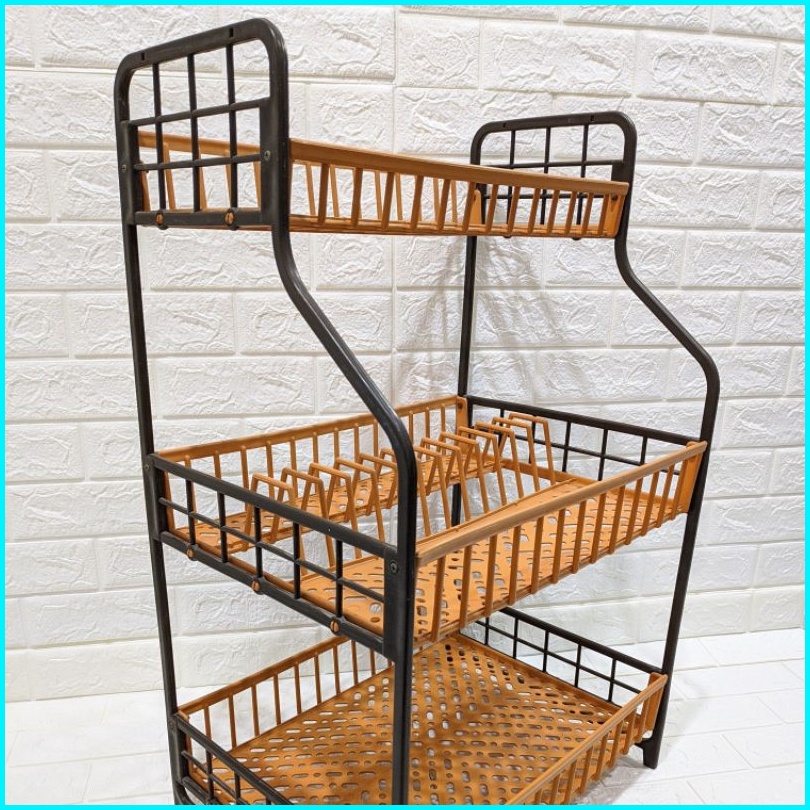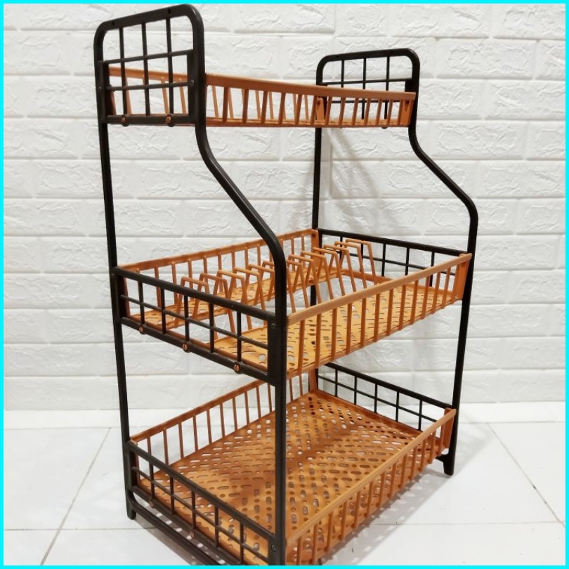 Rak Piring Plastik 3 Susun Coklat Murah Baskom Rak Pengering Peralatan Dapur Minimalis Serbaguna