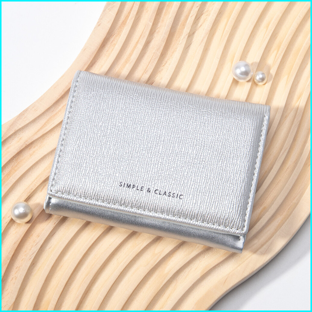 Dompet Lipat Wanita Kartu Huruf Glitter Korea Fashion Pu Kulit Perak Dmqb015 - Merah Muda -uang