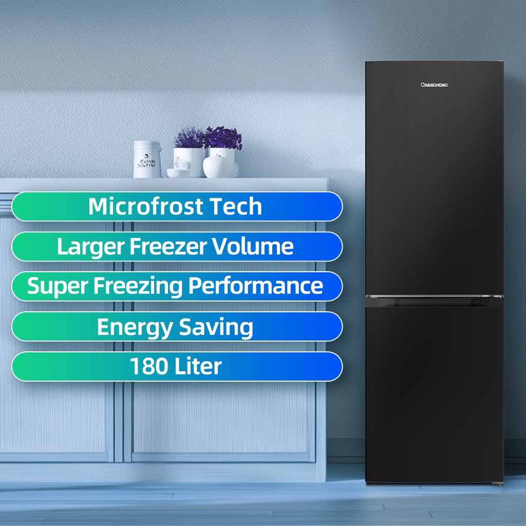 Changhong Kulkas 2 Pintu (Bottom Mounted Refrigerator) Lemari Es Kapasitas 180 Liter FBM210DB Black (Low Frost) (Kulkas Fleksibel) (Kombinasi Pendingian Dan Pembekuan) ( Kulkas Temperred Glass)