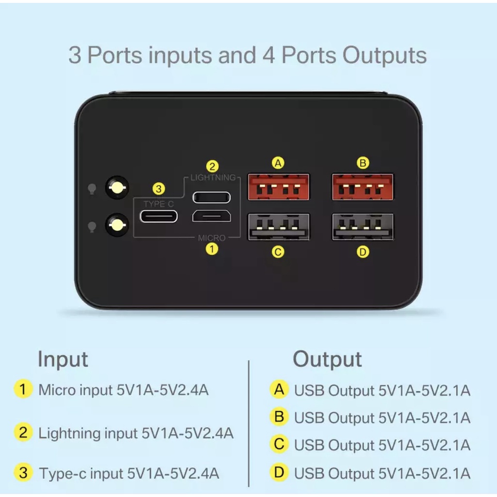 [Star]PowerBank LENTIVEN 60000mAh 4 USB Fast Charging