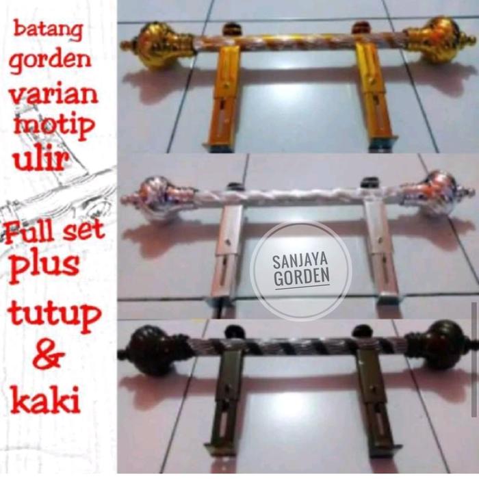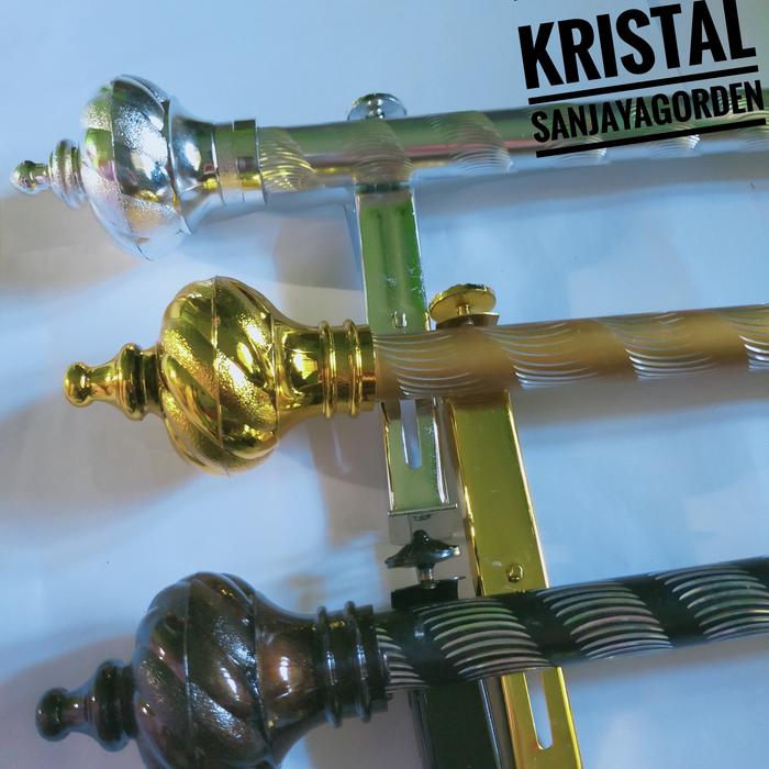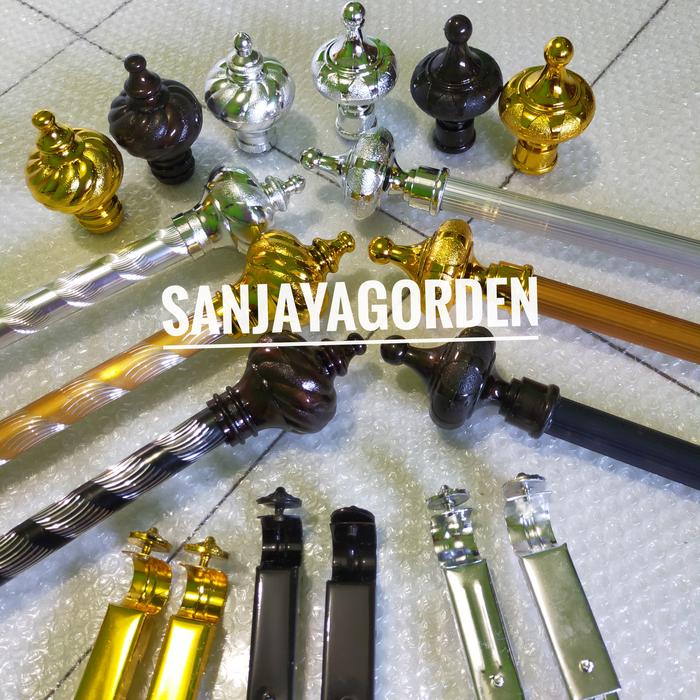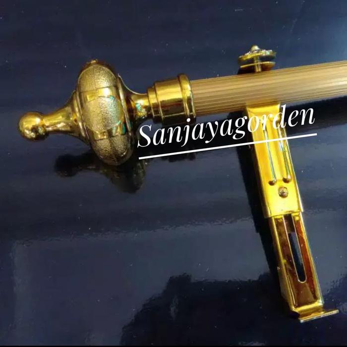 Besi Gordeng Batang Gorden Tiang Hordeng Rel Pipa Gordyn Fullset Murah - Gold Kristal, Panjang 50Cm