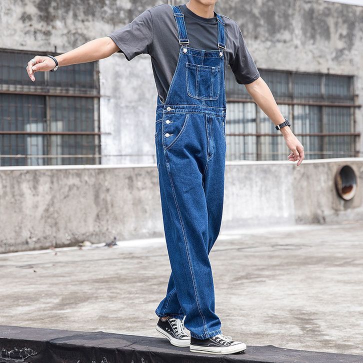 Celana Denim Suspender Pria, Jumpsuit Suspender Ukuran Besar Kelas Atas