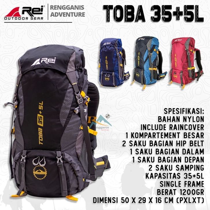 PROMO TAS CARRIER AREI TOBA 35 UP TO 40 LITER RANSEL HIKING AREI OUTDOOR GEAR 35 + 5 LITER INCLUDE COVERBAG
