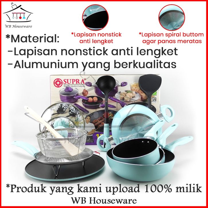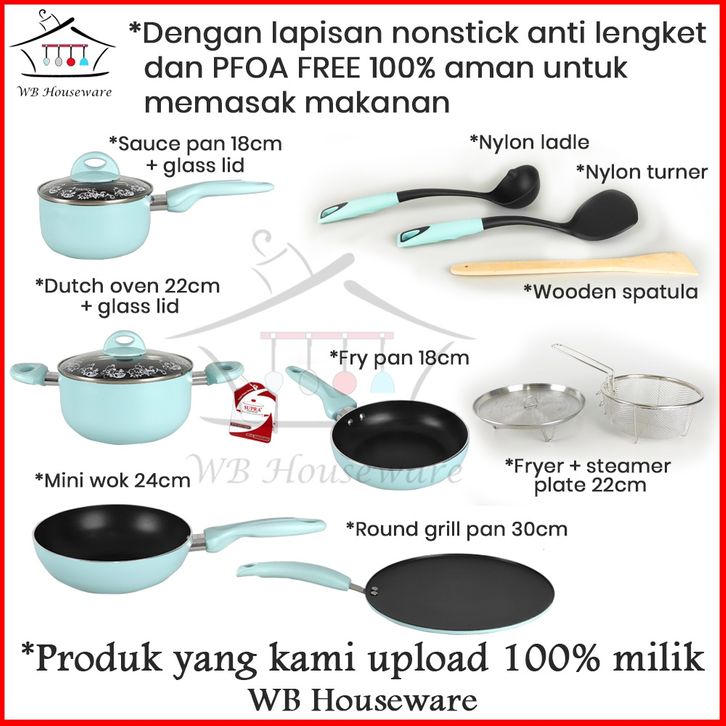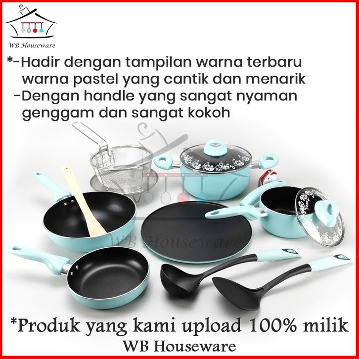 cookware set new panci set supra 12pcs / cookware set supra Turquoise renatta moeloek