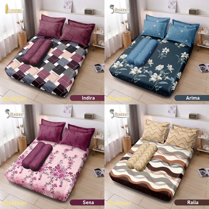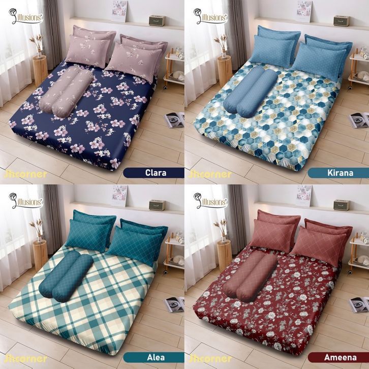 SPREI ILLUSIONS FLAT FITTED UKURAN 180X200CM T20CM 6KAKI KING SIZE 2 SARUNG BANTAL MOTIF TERBARU DISKON